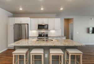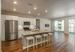 As soon as you step inside this third floor condo, you are welcomed by a sense of security and ease, with controlled access and a private key entry setting the tone for relaxed urban living. Sunlight pours through expansive windows, illuminating warm wood floors and an open-concept layout where the kitchen, dining, and living areas flow effortlessly together. The oversized kitchen island anchors the space, perfect for casual mornings, dinner with friends, or simply spreading out and enjoying the room to breathe.