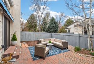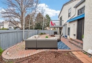 Situated in the desirable Concha townhouse community, this quiet end-unit offers a well-designed floor plan with multiple living spaces and thoughtful updates throughout. The main level features a spacious living room with vaulted ceilings, hardwood floors, and a wood-burning fireplace, creating a comfortable and functional gathering area. A dedicated dining space connects seamlessly to the kitchen, which includes an efficient layout and an eat-in breakfast nook. The upper level includes a generously sized primary suite with an ensuite full bath, walk-in closet, and an adjoining flex space ideal for a reading area, office, or additional lounge. Step out from the primary suite onto a private deck overlooking the back patio—an ideal spot to enjoy morning coffee or unwind in the evening while taking in a beautiful Colorado sunset. The lower level provides two additional bedrooms, a full bath with updated vanity, and a laundry room. The finished basement expands the living area with a family room featuring an egress window, along with a large storage room complete with a utility sink. Enjoy a private, fully fenced backyard patio with charming brick pavers—perfect for relaxing, entertaining guests, or creating your own garden oasis. Recent improvements include new carpet throughout, fresh interior paint, and a new electrical panel. The home also offers a 2-car attached garage. Conveniently located near parks, the Cherry Creek Trail, and a wide range of shopping, dining, and everyday amenities, this property combines comfort, functionality, and accessibility.