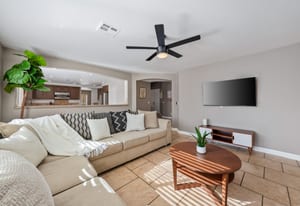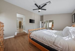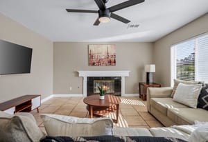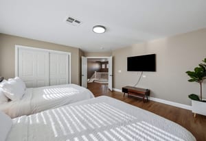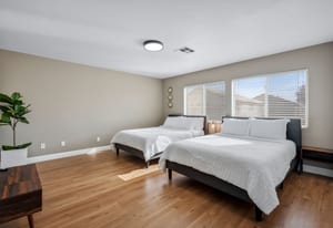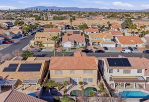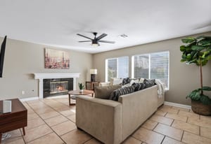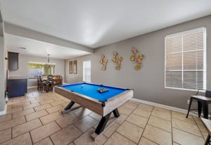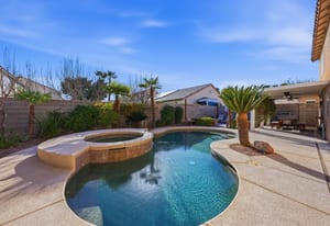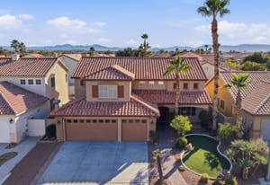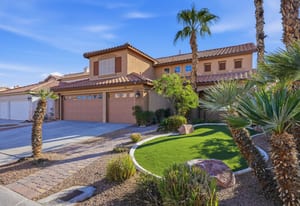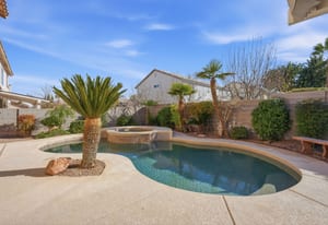 Spacious, Upgraded Home with Pool & Spa! Beautifully upgraded and offered fully furnished (optional), this spacious home features six bedrooms, including a downstairs bedroom with full bath, ideal for guests or multigenerational living. Enjoy a large backyard with a pebble-deck pool and spa, palm trees, and lush greenery surrounding a covered patio. Upgraded interior finishes throughout and a front covered courtyard add comfort and curb appeal. Conveniently located near the Las Vegas Strip and the future Brightline high-speed rail station, with easy access to entertainment, dining, and transportation. This home is an exceptional opportunity to experience in person.