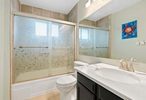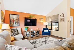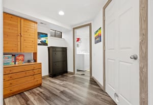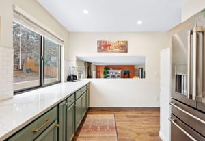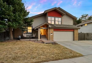 Rare Opportunity in Coveted Lake Arbor - one of Arvada's most sought-after neighborhoods! Contemporary Living Steps from the Lake! This home is stylishly updated with new countertops, appliances, paint, flooring, tile, etc... Perfectly positioned on a premium interior lot directly across from a beautifully maintained greenbelt and just one block from the lake, this exceptional home offers a wonderful blend of privacy, style, and indoor-outdoor living. The charming covered front porch with Trex decking welcomes you inside to soaring vaulted ceilings, expansive windows, and abundant natural light. Attractive luxury vinyl plank flows throughout the main living areas, enhancing the bright and open floor plan. Designed for both entertaining and everyday comfort, the kitchen features glass-front cabinetry, high-end appliances, and a gas range. Just beyond the dining area, a newer patio overlooks lush landscaping, perfect for outdoor dining or relaxing under Colorado skies. The spacious primary suite features a charming bay window with built-in seating and storage with MOUNTAIN and OPEN SPACE Views, along with en suite bath and dual vanities. You'll LOVE the secret door, hidden behind a painting in the secondary upstairs bedroom, leading to a great playroom or other bonus space! Lower level offers additional living space with a large family room with custom wet bar, gas-log fireplace with brick surround and stylish ¾ bath. Basement features additional bedroom, generous finished storage area with rough-in plumbing, ideal for finishing a bathroom, or other flex space! Additional highlights include a newer roof, gutters with guards, newer sliding glass doors with built-in pane shades, tankless water heater, furnace, central A/C are just 3 years old! Oversized 480 sq ft garage includes workshop and gas heater. Expansive RV-ready cement pad provides valuable additional off-street parking. Meticulously maintained and move-in ready in one of the area’s most desirable locations.
