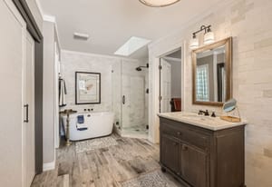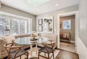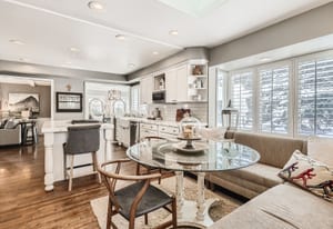 As you arrive, this elegant Green Oaks residence immediately feels set apart—gracefully set back from the street on a rare pentagon-shaped lot offering exceptional privacy, calm, & quiet luxury. A beautifully updated front entry welcomes you inside, where timeless design & warmth unfold effortlessly. The foyer opens to refined living & dining spaces accented by charming molding & rich hardwood floors that extend throughout the entire main level & much of the second floor, creating an inviting setting for both intimate gatherings & larger celebrations. The flowing floor plan leads to a light-filled family room & adjoining sunroom, offering flexible living & seamless indoor-outdoor connection. French doors open to a serene patio & enhanced outdoor entertaining space, while the expansive yard provides an ideal setting for play, recreation, & relaxation. The remodeled kitchen is both stylish & functional, featuring thick marble countertops in soft white & gray tones, a KitchenAid double oven, gas range cooktop, & a custom banquette that blends charm with everyday comfort. A main-level bedroom with an updated en-suite bath offers flexibility for guests or multigenerational living. Upstairs, four generously sized bedrooms & two updated baths include a tranquil primary suite with a spa-like en-suite & stand-alone tub. The rare convenience of bedroom-level laundry is complemented by additional laundry access on every floor. The finished basement adds valuable living space with a recreation or media room, updated cork flooring, & ample storage. Recent improvements include a new tile roof, updated bathrooms, exterior landscaping enhancements, updated garage door, & refined exterior details. Located in coveted Green Oaks, this home offers tree-lined streets, a community pool & tennis courts, the High Line Canal Trail, Aspen Academy, equestrian parks, & Cherry Hills Marketplace—timeless Greenwood Village living at its most private & desirable.