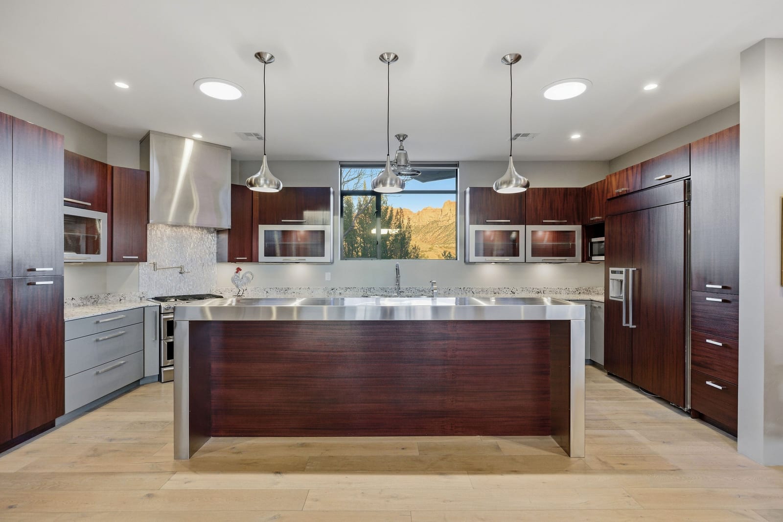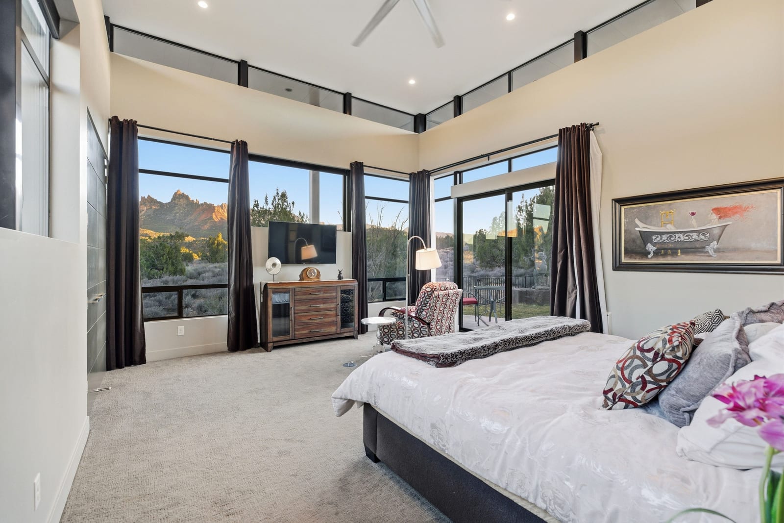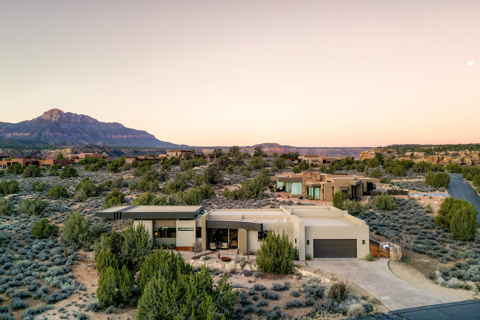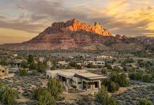 Located in the highly desirable Anasazi Plateau neighborhood just minutes from Zion National Park, this Burke Cartwright-designed home transforms the rugged Utah landscape into a private gallery. Every inch of this modern sanctuary is designed to honor its surroundings, with massive panes of glass framing iconic vistas of the West Temple and Kinesava red cliffs like living works of art. The interior radiates effortless warmth, anchored by light-toned engineered wood floors and an open-concept layout that flows naturally toward a sleek gas fireplace. Retreat to the primary suite to find your own gateway to the high desert, where a private backyard offers front-row seats to the glow of Eagles Crag. ...