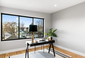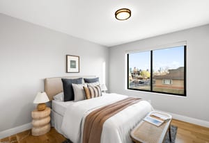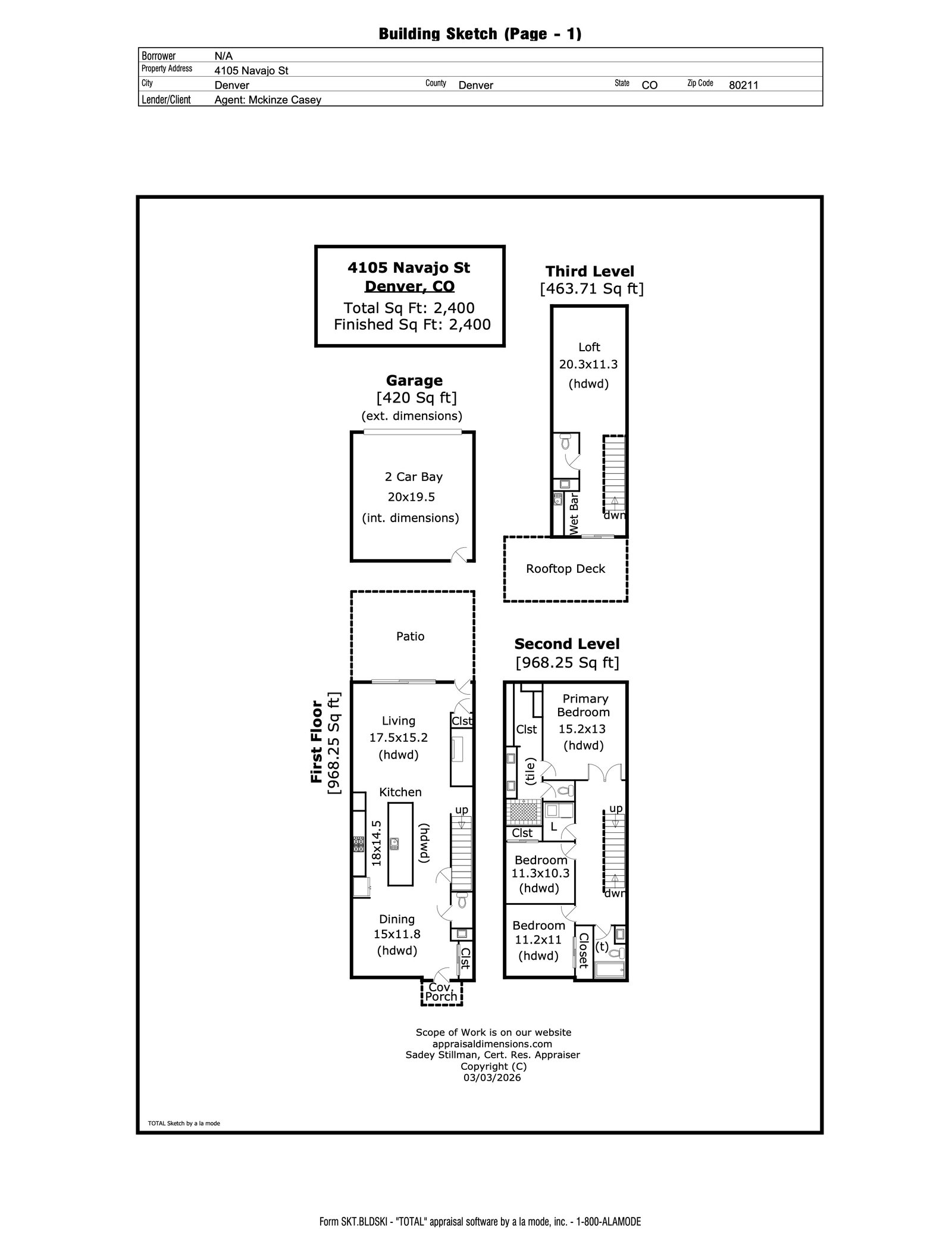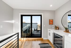 Rising three levels above a prime corner lot, 4105 Navajo captures sweeping views of the Denver skyline and Front Range. Built in 2022, this 3-bed, 4-bath home offers over 2,400+ sqft of sun-drenched living, minutes from LoHi and surrounded by multiple parks and some of Denver’s most sought-after dining. Upon entry, formal dining with an accent wall + oversized windows welcomes you. The kitchen sits at the center of the home with quartz countertops, stainless steel appliances, and a dramatic 13-foot island built for casual dining and conversation. Main living is anchored by a custom fireplace + floor-to-ceiling feature wall. Wall-to-wall sliding doors open to a fenced backyard with a concrete patio and abundant southern sun exposure, plus access to the detached 2-car garage. Upstairs, the primary suite is tucked behind French doors and overlooks the backyard through oversized windows. The ensuite bath features dual vanities, charming tile floors, and an oversized walk-in shower, while the spacious walk-in closet includes built-in shelving. Two additional bedrooms share a full bath on this level, along with a conveniently located laundry room. Sunlight pours through windows in every direction, filling the home with light at every hour of the day, guiding a sunny ascent to the third-floor retreat. This flexible lounge offers gathering or work-from-home space and a full wet bar with beverage refrigeration, opening to the rooftop deck- an unforgettable vantage point for entertaining among city lights and mountain sunsets. Ciancio Park is outside your front door, and staples like Huckleberry Roasters, Diebolt Brewing, and Michelin-recognized Wolf’s Tailor are all moments away. With proximity to local restaurants and the energy of LoHi moments away, life here is defined by location.
