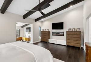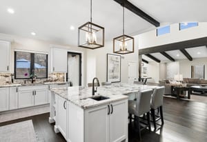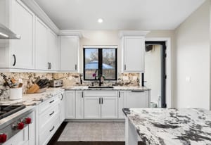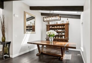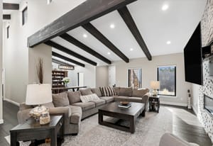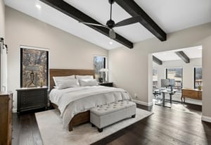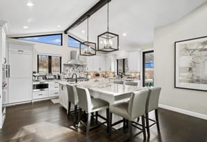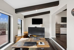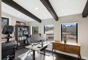 Privately tucked away in the rolling hills of Charter Oaks, this exceptional 2.25-acre property captures distant mountain views in a peaceful, serene setting. Completely remodeled in 2022, this main-level living home delivers a true “WOW” moment from the instant you step inside. Architectural details including soaring vaulted ceilings accented by rich wood beams, skylights that flood the space with natural light, designer lighting, muted paint hues, and wide-plank engineered hardwood flooring throughout—creating warmth, character, and timeless appeal. A spacious Great Room, anchored by a stunning stone fireplace, flows effortlessly into the dining area and open-concept kitchen, making this home an entertainer’s dream. The gourmet kitchen is nothing short of spectacular, featuring an oversized center island with breakfast bar seating for six—perfect for gathering with family and friends. Premium built-in Wolf, Sub-Zero, and Cove appliances elevate the space, including a refrigerator/freezer, wine and beverage refrigerator, double oven with steam oven, microwave, gas cooktop with stainless hood, and dishwasher. Main level living includes an en-suite guest bedroom, while the luxurious Primary Suite features its own spa-inspired ensuite bath, and a private sitting room—perfect for quiet mornings or relaxing evenings. On the opposite wing, you’ll find a spacious laundry room with built-in cabinetry, an additional bedroom/office, powder room, and mudroom. The lower level continues to impress with a bedroom, a media/game room, a ¾ bath, and a full wet bar. The well-appointed bar includes a wine refrigerator, beverage refrigerator, and separate refrigerated and freezer drawers—ideal for hosting gatherings. Step outside to enjoy a welcoming front deck and take in panoramic mountain views, and enjoy the frequent visits from local wildlife. This is refined mountain living at its finest—where luxury, comfort, and tranquility come together beautifully. Truly Stunning!