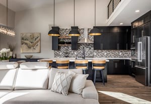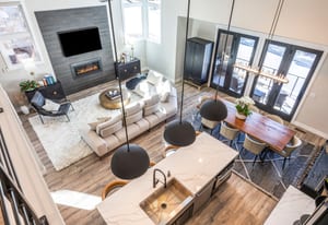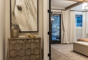 Positioned above the Jordanelle Reservoir with views toward Deer Valley, this end-unit residence in Deer Waters delivers a refined take on modern mountain living, where architecture, light, and landscape are in constant conversation. As a corner unit, the home captures natural light from multiple exposures, framing blue-water views by day and alpine silhouettes by night. Offering the highly sought-after Modern Solace floor plan—rarely available in Deer Waters—the layout is open yet intentional, anchored by a statement kitchen with an oversized island and sculptural pendant lighting that flows seamlessly into the great room. A tiled fireplace adds warmth and a modern edge, creating a space equally suited for relaxed mornings or elevated entertaining. Above, a loft currently styled as a yoga-meets-pilates studio introduces a dedicated wellness layer—an airy, grounding space ideal for mindful movement, creative focus, or a secondary lounge that adapts effortlessly to your lifestyle. Finishes throughout are timeless and elevated: quartz surfaces, natural stone accents, designer lighting, and a calming contemporary palette that allows the surrounding views to take center stage. The main-level primary suite is a true retreat, featuring a freestanding soaking tub, a spa-inspired bath, and a wood-beam ceiling detail that brings subtle mountain character to a clean, modern frame. Generous storage and a spacious two-car garage support effortless day-to-day living. Located just minutes from Park City, Deer Valley East Village, and the upcoming Mayflower Resort, Deer Waters residents enjoy direct trail access, pickleball courts, and walkable entry to Jordanelle State Park for hiking, biking, and lake days. With the future Jordanelle Parkway connection, this home sits at the center of Utah’s most compelling mountain expansion. Offered fully furnished, this modern mountain residence provides true turnkey living—ideal for low-maintenance ownership and lock-and-leave flexibility. Select artwork and personal items excluded.