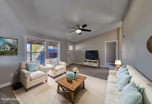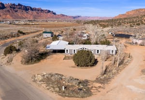DESERT RETREAT WITH STUNNING RED ROCK VIEWS! Enjoy wide-open space and breathtaking scenery in this 4-bedroom, 2-bath, move-in-ready home with a fresh feeling, located in Spanish Valley. Set on a full acre, this property offers stunning views of Moab’s iconic red rocks and the La Sal Mountains. Inside, you’ll find vaulted ceilings, multiple skylights, a neutral color palette, and gorgeous cabinetry, which create a bright, open atmosphere, along with both a living room and a separate family room, providing plenty of space for relaxing and entertaining.