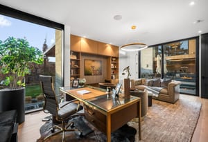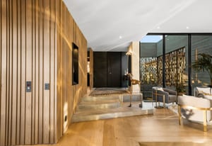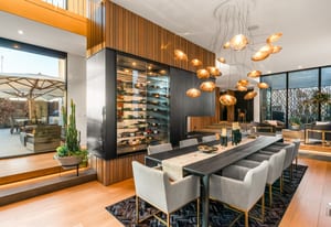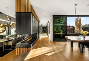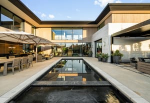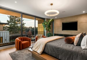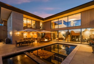 Behind the private gates of Cedar Estates, this striking, architecturally inspired residence is a thoughtful composition of steel, glass, and wood. Expansive sightlines unfold throughout, enhanced by generous ceiling heights and walls of glass that create an intimate and seamless connection between refined interiors and impeccably designed patios and courtyards. At the heart of the home, the main level centers around a chef-caliber kitchen featuring Wolf appliances, a Caesarstone waterfall island paired with a live-edge slab table, an oversized pantry, and an integrated wet bar and coffee nook. A full wall of sliding doors opens to a resort-style outdoor setting with a sleek pool and spa, outdoor kitchen, and multiple heated seating areas arranged around sculptural fire elements, allowing entertaining to flow effortlessly between indoor and outdoor spaces. Adjacent living and dining areas are anchored by a sculptural Bocci light installation, integrated wine storage, and a gas fireplace. The upper level serves as a private retreat, highlighted by a secluded primary suite with a spa-inspired bath featuring radiant heated floors, a steam shower, and a custom walk-in closet with laundry. Two additional spacious en suite bedrooms and a loft-style office complete the level. The fully finished lower level expands the home’s livability with a media room, game room, wellness suite with gym and Finnleo infrared sauna, and two private guest suites. All levels are seamlessly connected by a private elevator. Outdoors, a pool and spa are complemented by covered patios, two fire pits, an outdoor kitchen, and serene landscaping, creating a true sanctuary just steps from the heart of Cherry Creek.