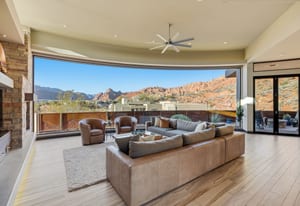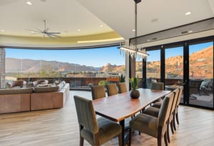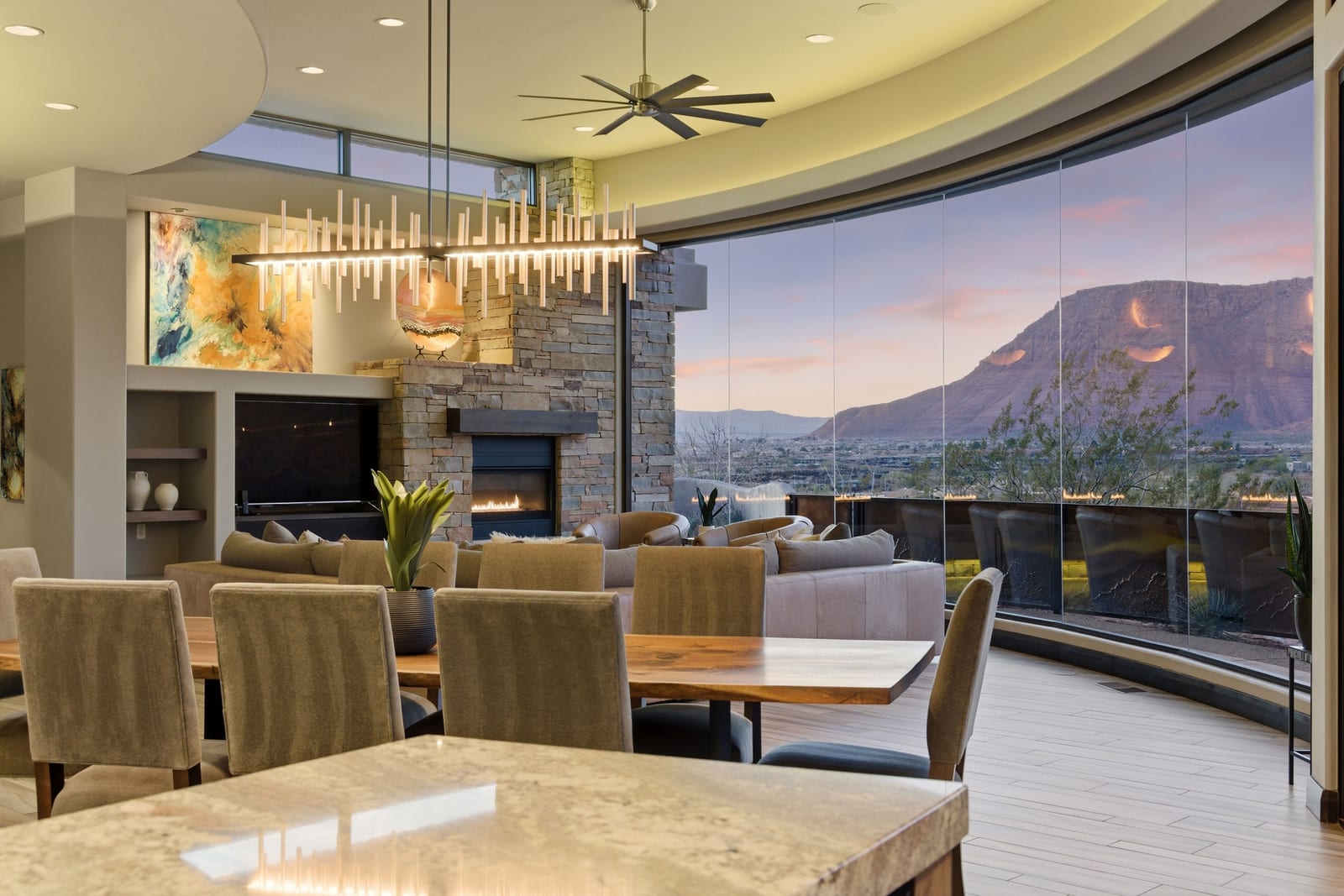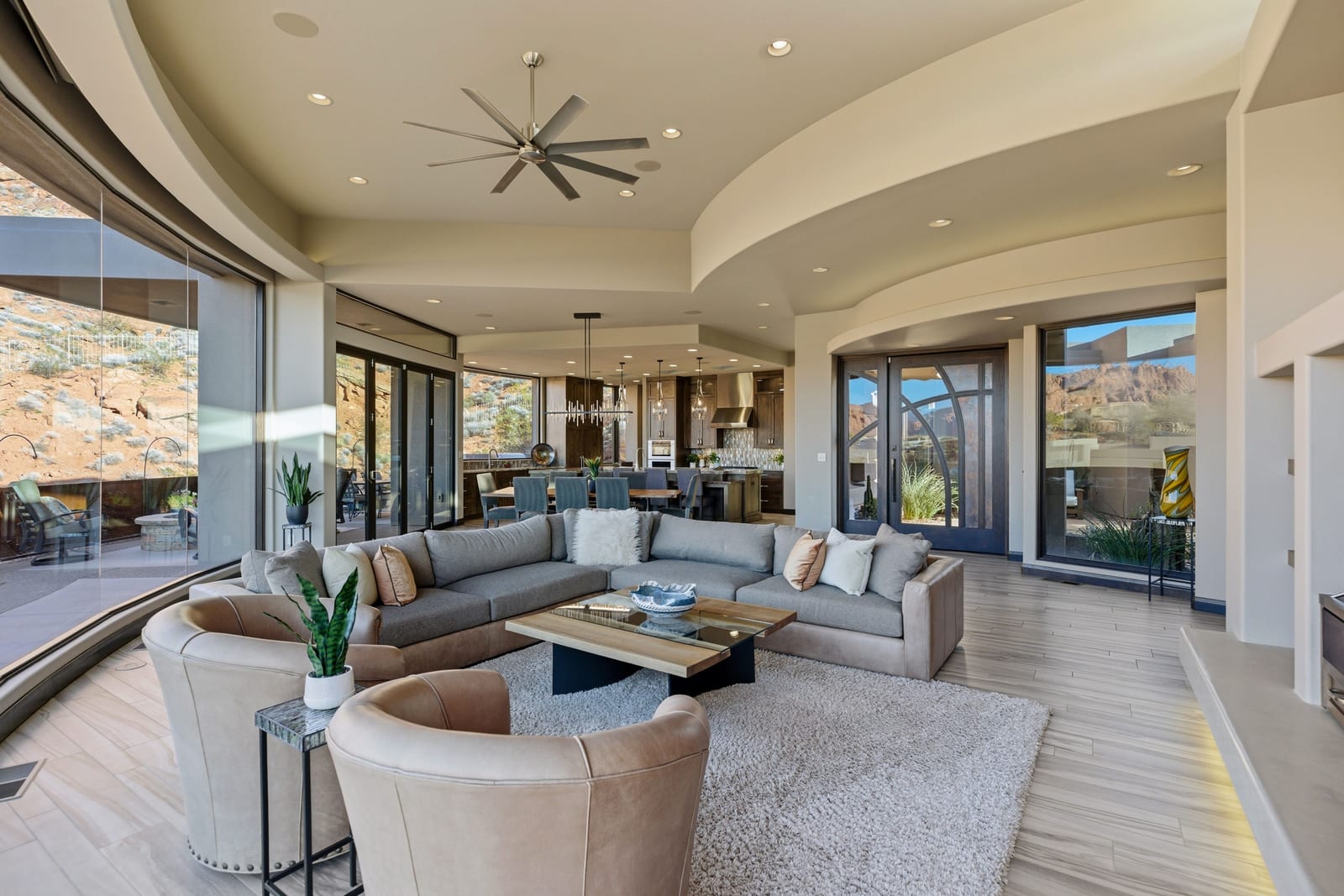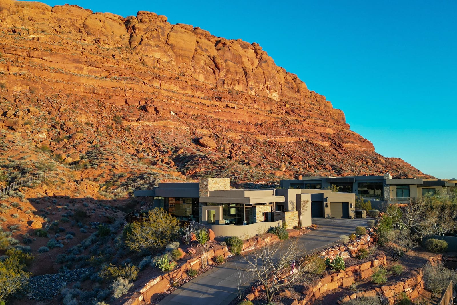 Elevated in the Cliffs of Snow Canyon, this exceptional home offers a front-row seat to one of Southern Utah’s most iconic landscapes. Floor-to-ceiling butted glass captures sweeping canyon views while filling the home with natural light and seamlessly blending indoor and outdoor living. The custom designed layout features 3 bedrooms plus a private office, highlighted by high-end finishes and generous spaces ideal for entertaining.