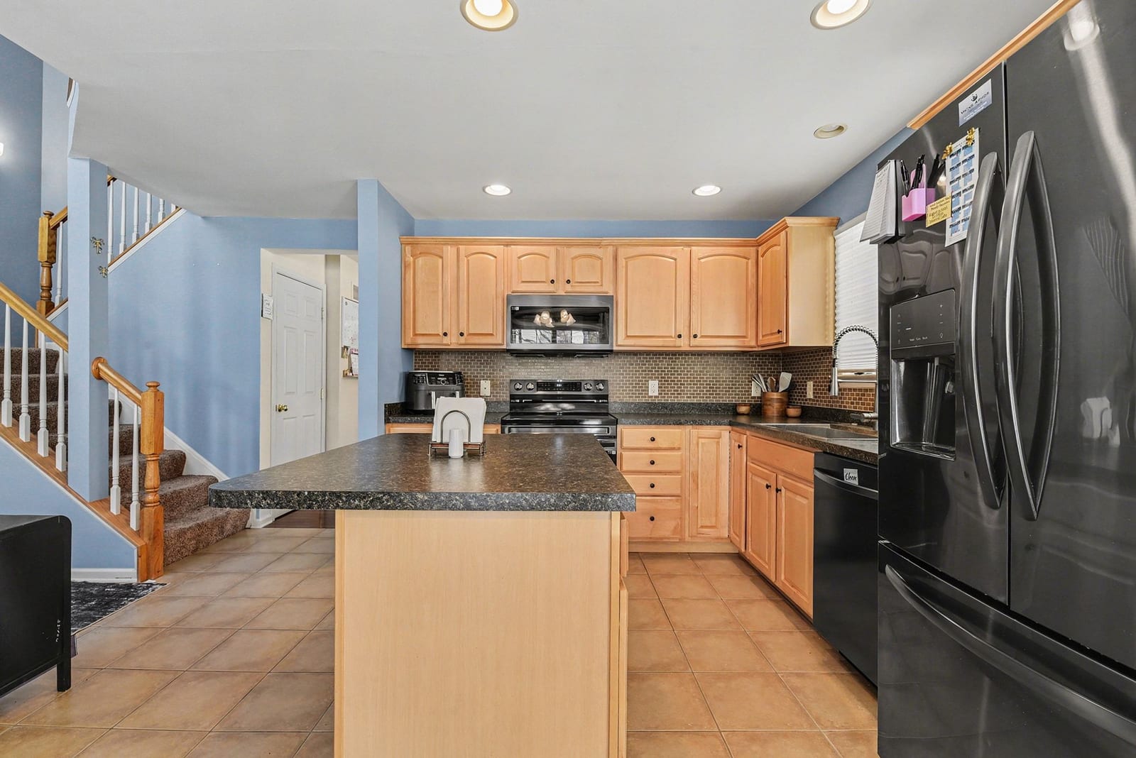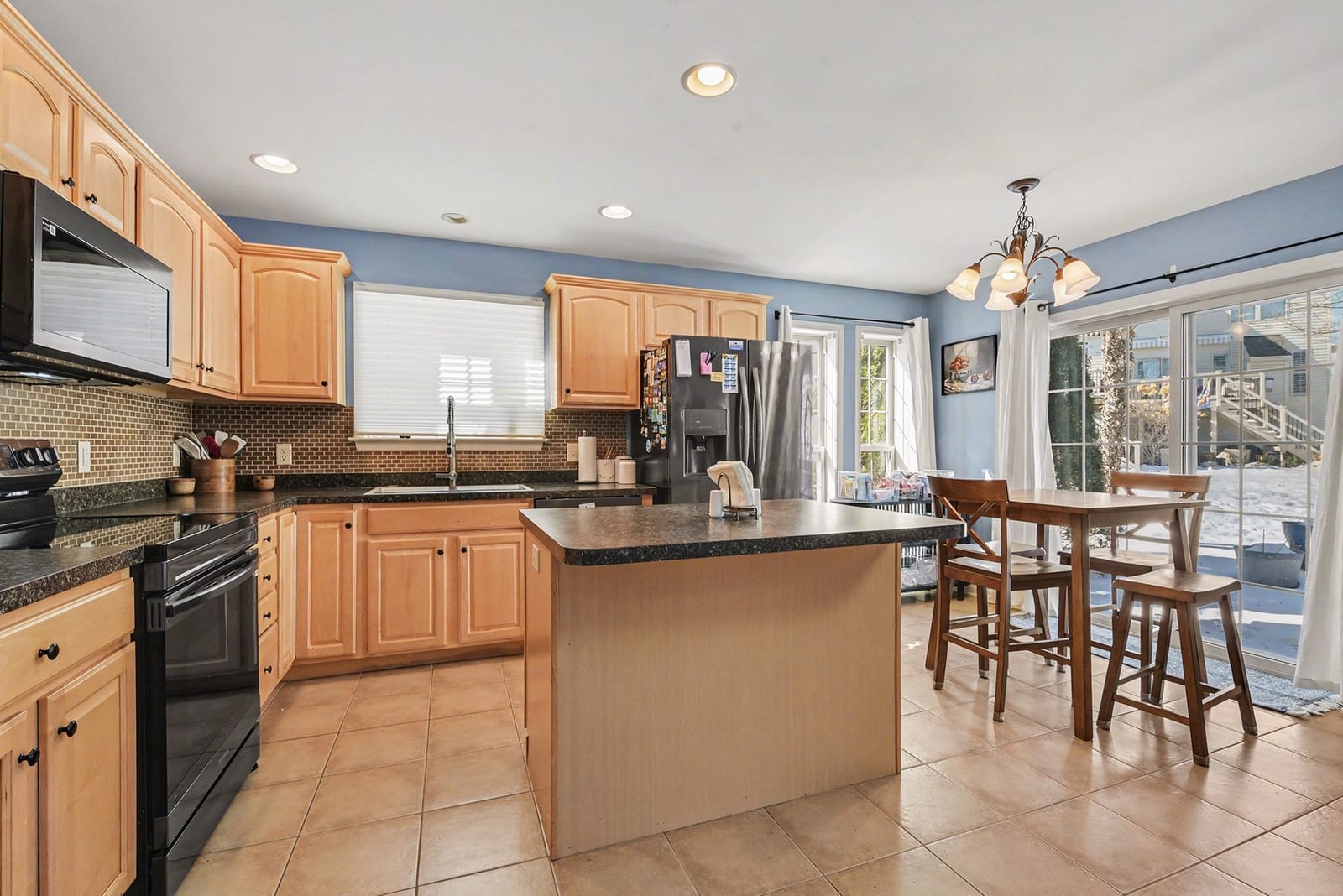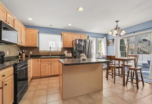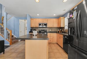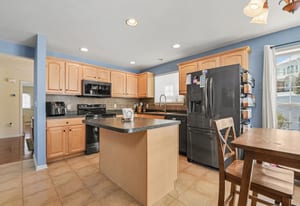 The kitchen was designed for real life and real gatherings. There’s a center island for casual meals or conversations, plenty of storage, and a clean modern backsplash that ties it all together. It flows naturally into the dining area so hosting friends or family feels effortless instead of crowded.
