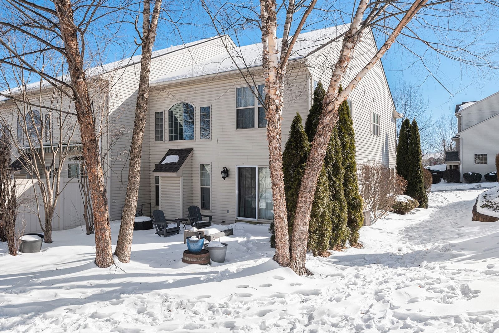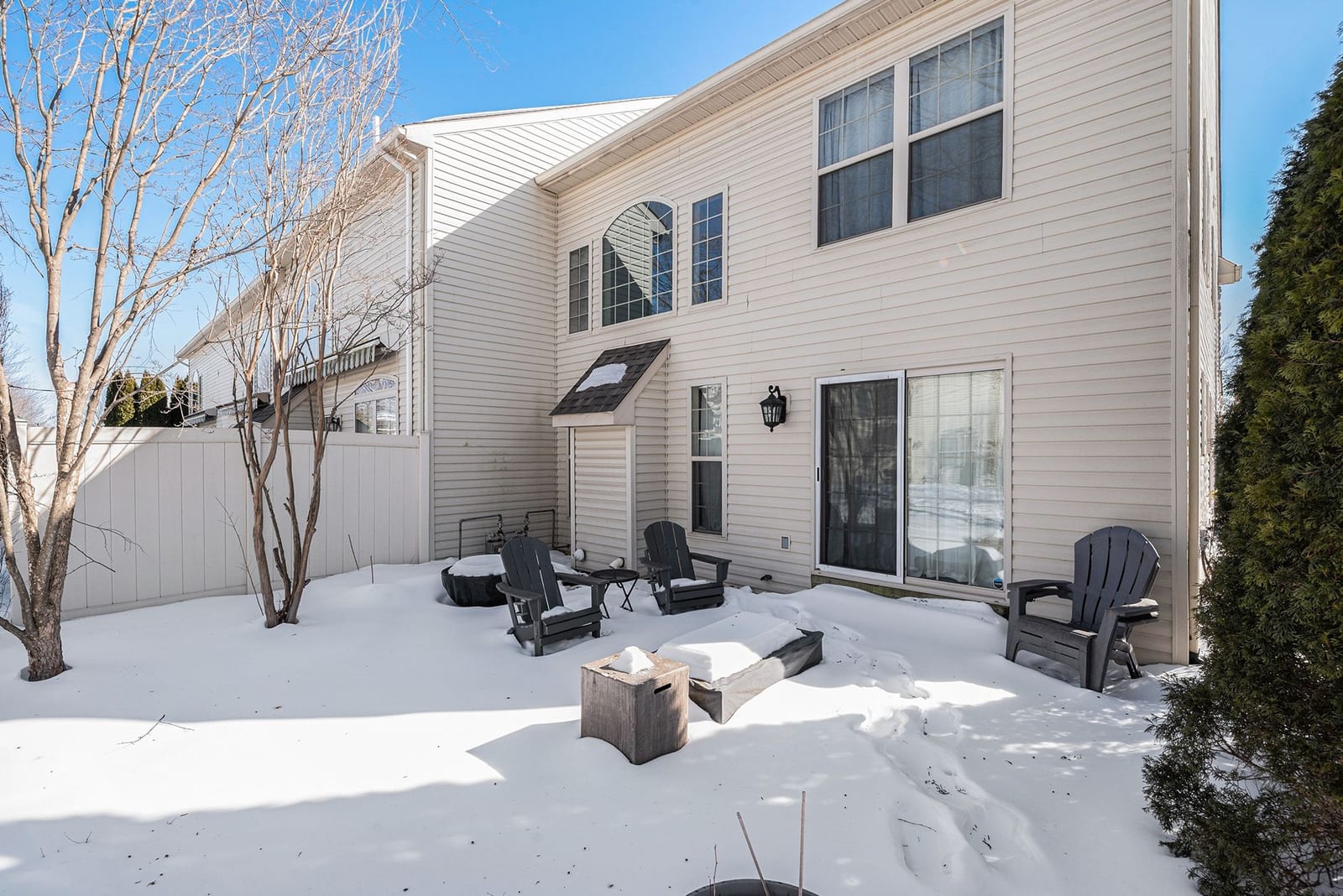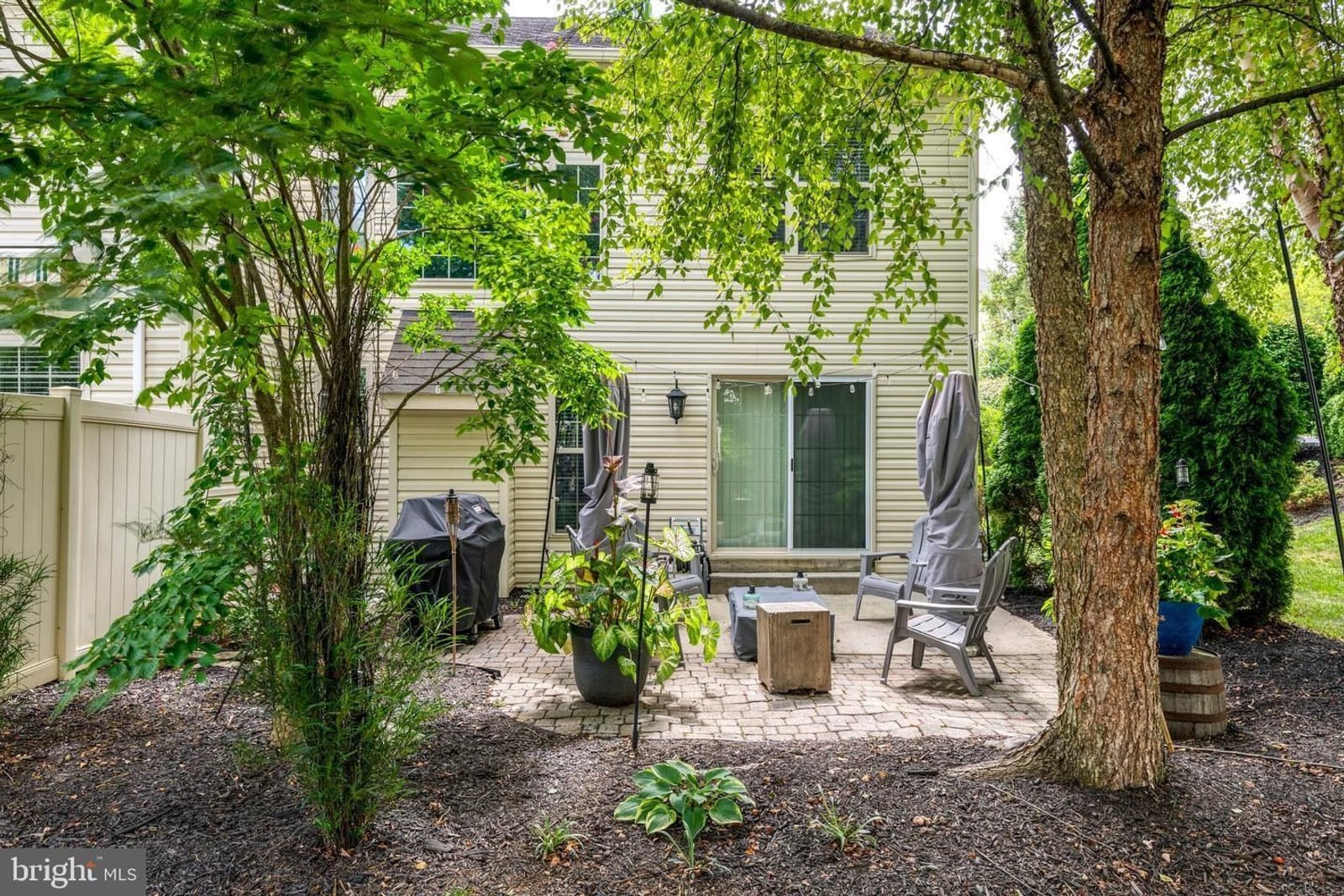 Out back, the private patio feels like a little escape. Mature landscaping gives you shade and privacy, and the firepit and café lighting make it the perfect spot to unwind at the end of the day or host a relaxed get-together.