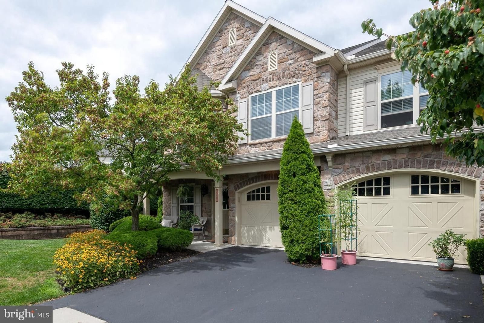 Two closets, including a walk-in, offer plenty of storage, and the private bath features a double vanity, soaking tub, and tiled glass-door shower.