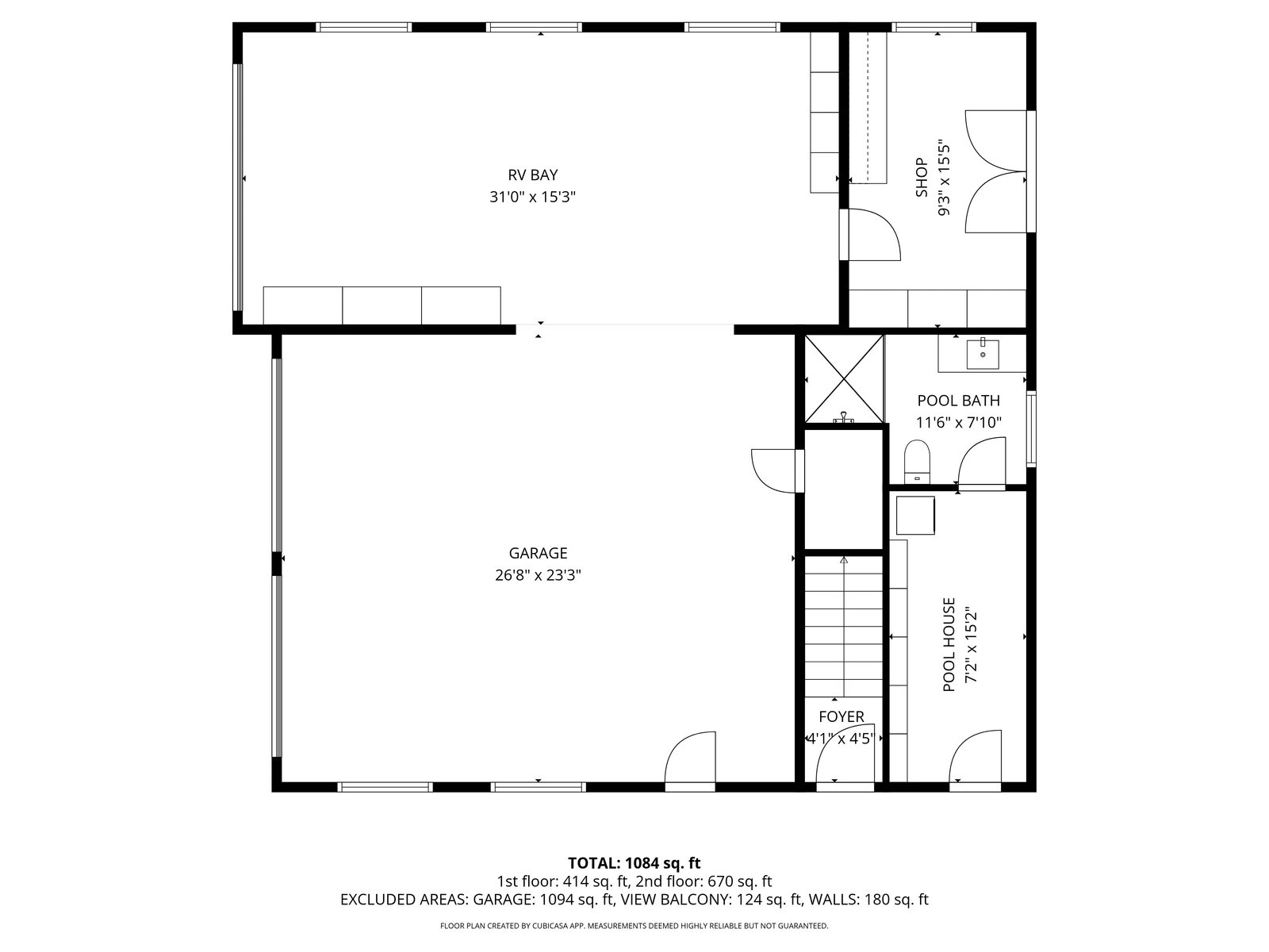 A detached building includes a 10' RV bay, additional garages, shop space, a pool house with laundry and full bath, and a second-story guest apartment.