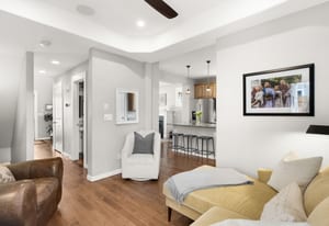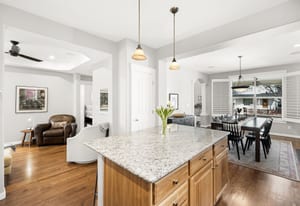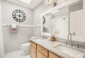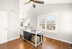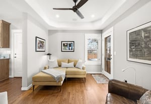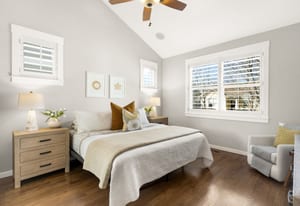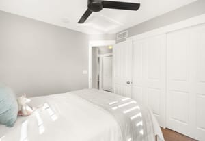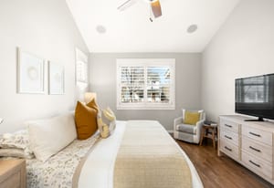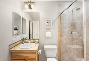 A true rarity in Central Park, the home features a main-floor primary suite. This spacious retreat offers hardwood floors, vaulted ceilings, surround sound speakers, a ceiling fan, a generous walk-in closet, and a fully renovated spa-inspired four-piece ensuite bath designed for comfort and ease.