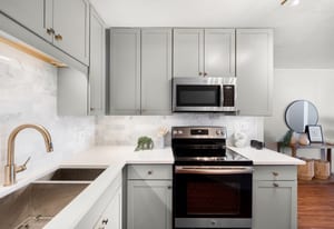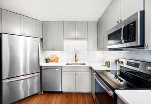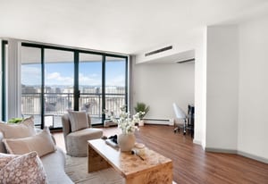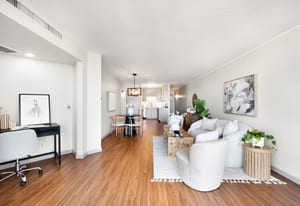 Residents of Penn Square enjoy a curated collection of amenities including a rooftop garden and lounge with panoramic city and mountain views, outdoor pool, grilling areas, fitness center, 24-hour front desk security, off-street guest parking, and a private guest apartment for visiting friends and family.