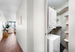Additional highlights include laminate flooring throughout, in unit laundry, exceptional storage and closet space, a deeded garage parking space, and a private storage unit.