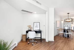 The completely updated kitchen blends style and functionality, featuring stainless steel appliances, a marble backsplash, generous cabinetry, and a spacious layout that connects beautifully with the main living areas. The serene bedroom offers excellent closet space and soft natural light, while the fully renovated bathroom showcases refined finishes and thoughtful design.