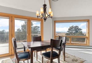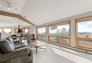 Set atop an elevated homesite just five miles from Elizabeth, Kootney Ridge Ranch spans 36.86 acres and captures sweeping Front Range views stretching from Pikes Peak north. The 5,027-square-foot walk-out ranch was thoughtfully designed around its setting, with expansive picture windows and vaulted ceilings that frame the surrounding landscape and draw the mountains and open prairie into the living spaces. Here, Colorado sunsets and distant peaks create a changing backdrop.