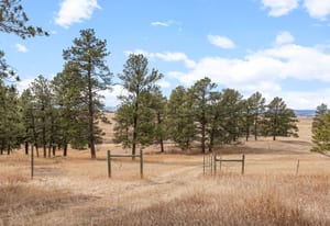 That landscape extends across the property. Open meadows, mature ponderosa pines, and natural rock outcroppings create a classic Colorado setting across gently rolling acreage. The terrain balances usable pasture with pockets of treed privacy, offering both functionality and natural beauty. Wildlife frequently passes through the property, including deer, antelope, turkey and elk.