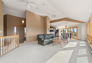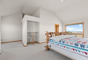 Inside, the home offers a flexible layout designed for everyday living, entertaining, and taking in the spectacular mountain views. Centered around expansive picture windows, the main level includes an open living, kitchen, and dining area oriented toward the views, along with a private office and two bedrooms. The finished walk-out basement adds four additional bedrooms, large windows, and direct access to the lower patio—ideal for guests, multigenerational living, or recreation.
