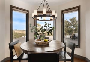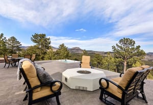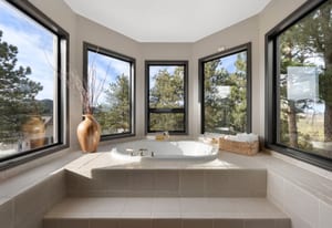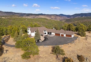 One of Soda Creek’s most exceptional offerings, this 20-acre ridge-top estate commands unobstructed 360° views from rolling vistas to the Continental Divide! The setting feels cinematic—sky meets mountain—while the homesite is elevated above a private meadow suited for a barn, pasture, or equestrian pursuits. With only three homes on the street, privacy is paramount, yet I-70 is minutes away, linking Denver, DIA, world-class skiing, and everything Colorado, making the neighborhood one of the most sought-after in North Evergreen. Reimagined with a local designer, the home blends a modern mountain aesthetic with custom updates throughout! True main-floor living provides a rare advantage: primary retreat-like suite, oversized office, dining, laundry/mudroom, and flexible spaces—all on a single level. The open-concept family and gathering areas flow naturally into a redesigned kitchen, anchored by a stunning 2" raw-edge marble island, butler’s bar, and top-tier appliances. NanaWall doors dissolve indoor/outdoor boundaries to a south-facing deck framing endless views. A new oversized patio (pre-piped for heat) showcases an infinity-edge swim spa. A gated, newly sodded, huge backyard is perfect for entertaining or quiet reflection. Key longevity assets include a newer Class IV roof, furnaces, gutters and water heaters, replaced windows, upgraded electrical panel, and durable exterior stonework. Two garages provide exceptional capacity for up to 11 vehicles, ideal for collectors, recreational toys, or a workshop.Upstairs, three ensuite bedrooms share a versatile loft, while the lower level—with rec-room, sunroom, steam shower, and private entrance—offers generational space for guests, wellness, or a studio. Soda Creek residents enjoy private trails, a neighborhood pond for fishing and skating, and Evergreen’s mountain-town energy, historic charm, and convenient amenities within minutes—an estate defined as much by views, lifestyle, and rare seclusion as by the land itself.