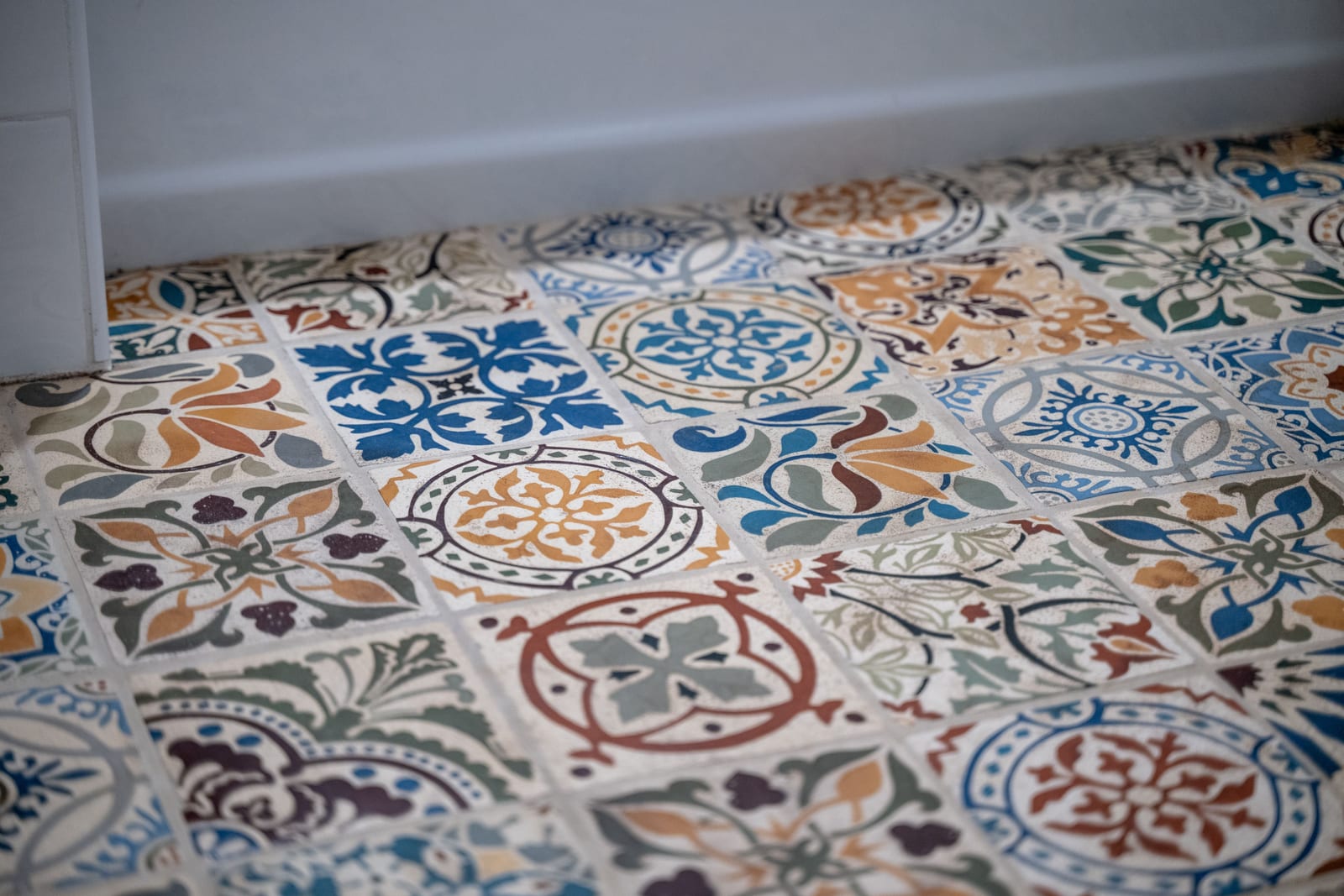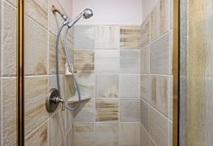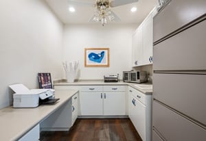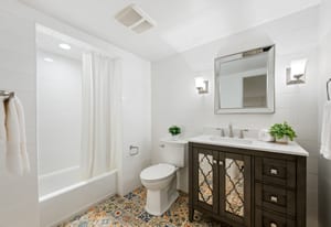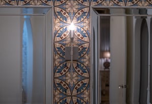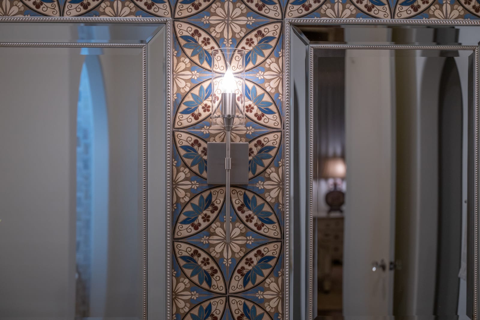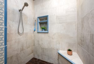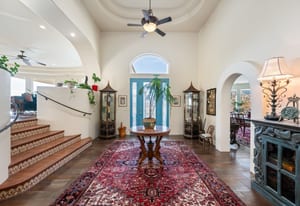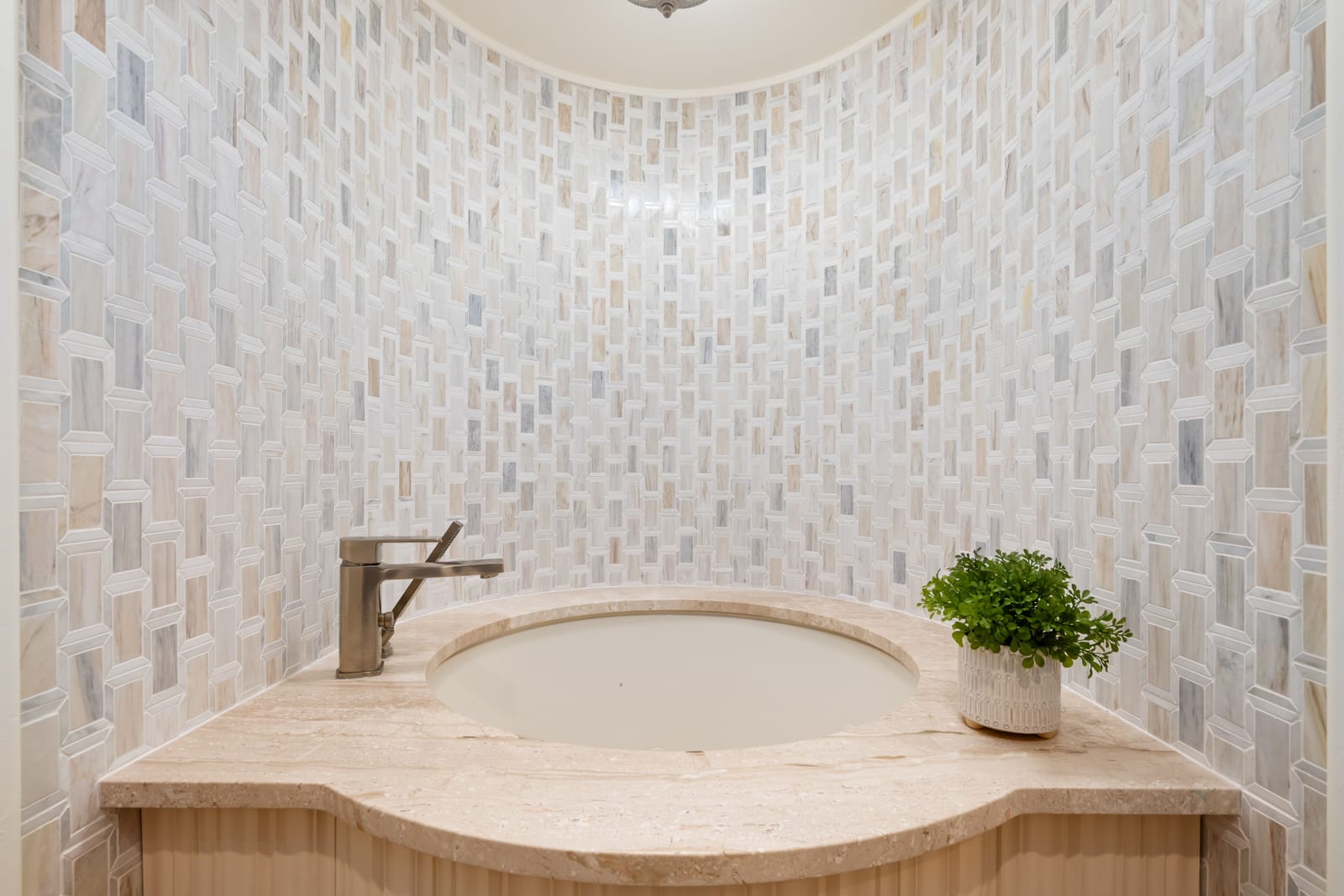 The main residence offers a desirable split-bedroom layout with a spacious primary suite featuring two walk-in closets (one with built-in safe) and a custom bath with dual sinks and walk-in shower. Two additional bedrooms each offer nearby or private 3/4 baths. Major 2017 updates include an enclosed back porch with Indian Temple Door, Art Nouveau fireplace, remodeled kitchen and primary bath featuring custom hand made ceramic tile, new flooring throughout.