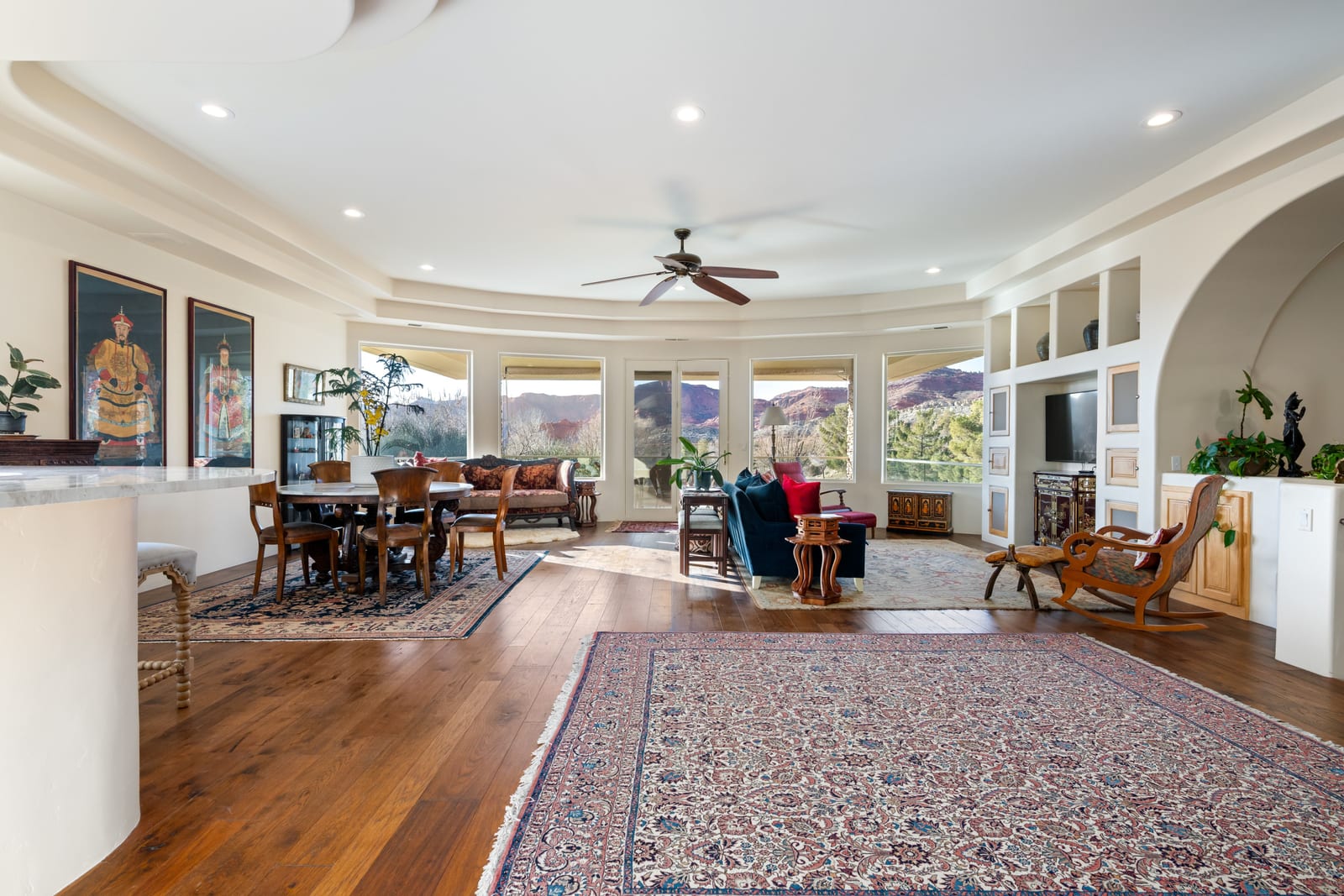 Private 34+ acre gated Southern Utah estate offering rare seclusion, sweeping red rock views, and unobstructed open sky at the end of a paved road. Built by Mark Fahrenkamp in 1999 and extensively updated, the 3-bedroom, 3-bath home with den features a dramatic great room and expansive glass-railed deck capturing stunning sunsets. Below the home, a peaceful bass and bluegill stocked pond with lily pads and gazebo creates a serene retreat.