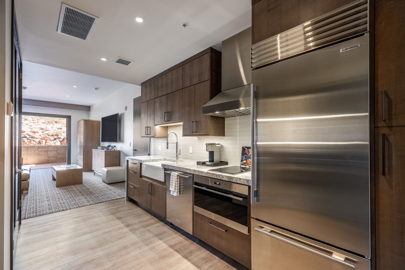 Discover your place at Black Desert Resort with this thoughtfully designed Studio King residence, ideally located just steps from the future five-acre Black Desert Rapids water park—now under construction and slated for completion in Spring 2027. Offering 642 square feet of well-appointed living space, this studio features a spacious layout with a kitchenette equipped with Wolf and Sub-Zero appliances, a full-size refrigerator, in-unit washer and dryer, and a pull-out queen sofa to comfortably accommodate family or guests.