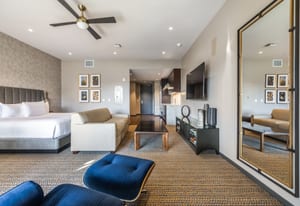 With 715 square feet of thoughtfully designed living space, this Terrace Studio offers the perfect blend of comfort, convenience, and resort-style living. The well-appointed kitchenette features a full-size refrigerator, and the in-room washer and dryer provide everything you need for effortless stays. Just steps from the energy of Black Desert’s Resort Center, you’ll enjoy immediate access to heated outdoor pools, a hot tub, and the Pro Shop for seamless tee times, with the highly anticipated Black Desert Rapids water attraction coming Spring 2027.