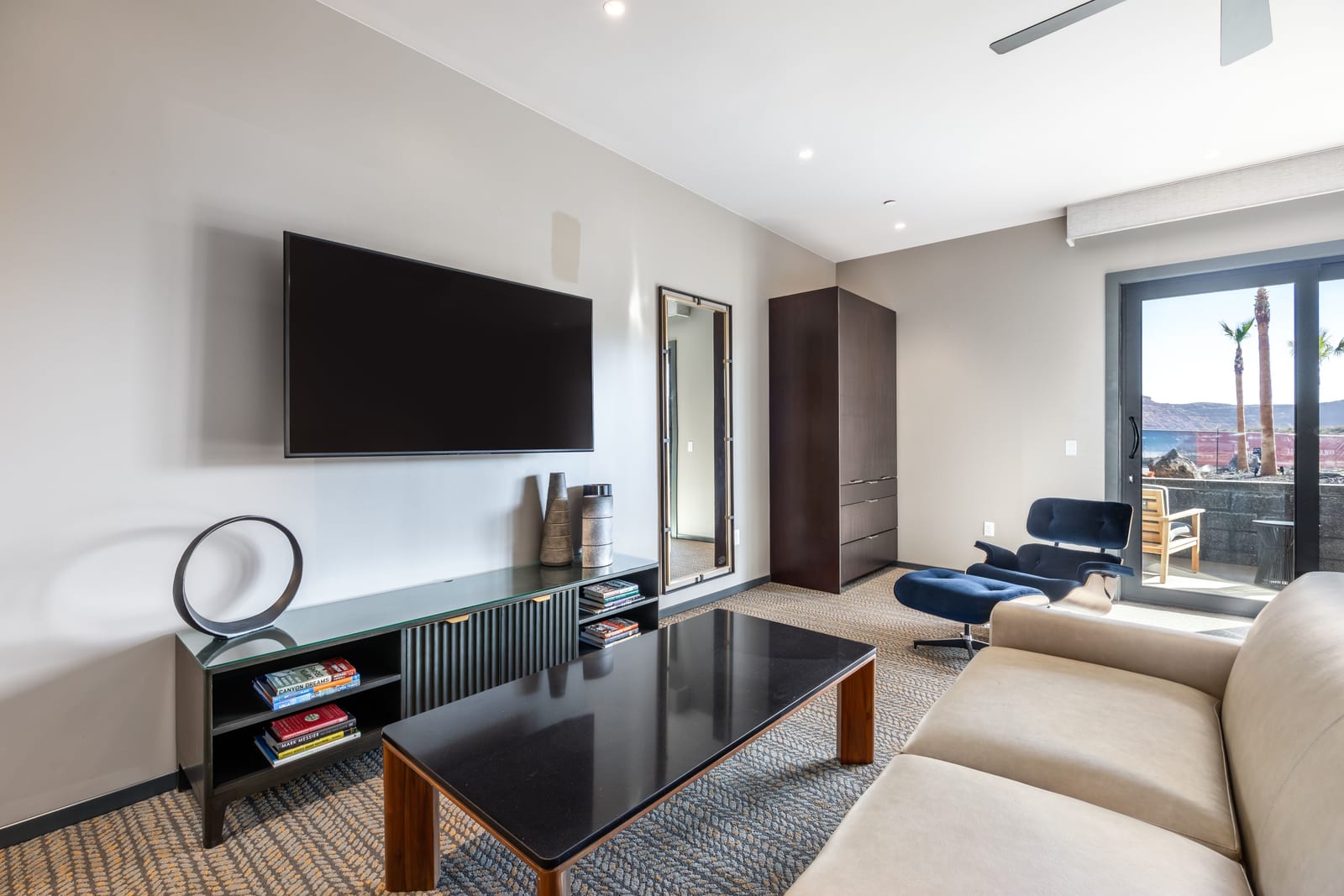 The King Suite layout with a queen sleeper sofa provides ample space for family or guests, making this an ideal retreat for both relaxation and entertaining. Black Desert Resort Club membership is included with no initiation fee, granting access to an unmatched collection of amenities and experiences for all ages.