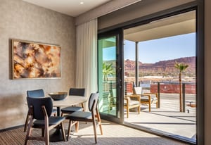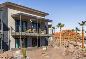 Enjoy elevated resort living in this 715-square-foot Terrace Studio featuring second-level views stretching across the striking red rock peaks of Snow Canyon. Thoughtfully designed with a kitchenette including a full-size refrigerator and an in-room washer and dryer, this residence offers both comfort and convenience in a spectacular setting.
