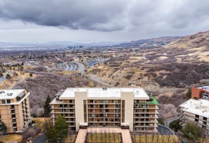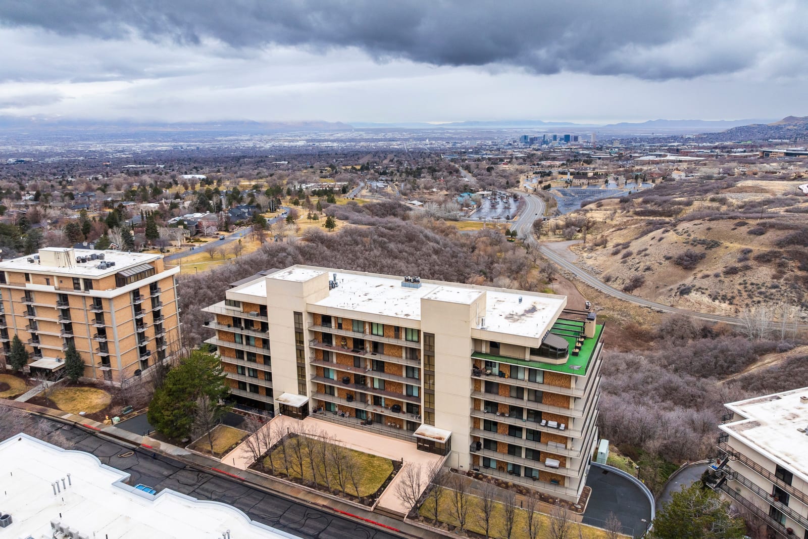 Located within the coveted Donner Place Condominiums, this exceptional single level home offers refined luxury paired with effortless living and sweeping panoramic views. Elevated on the fourth floor, this residence captures remarkable southwest facing vistas of the Salt Lake Valley from a 270-degree wraparound terrace. Expansive sliding glass doors on the south, west and east sides invite an abundance of natural light and frame the surrounding landscape.
