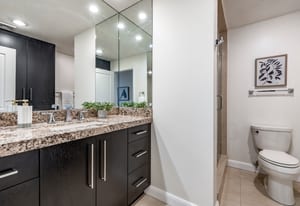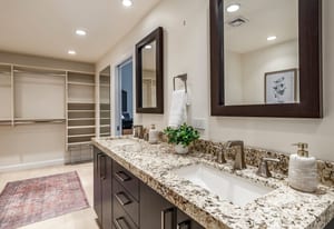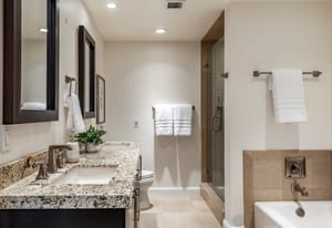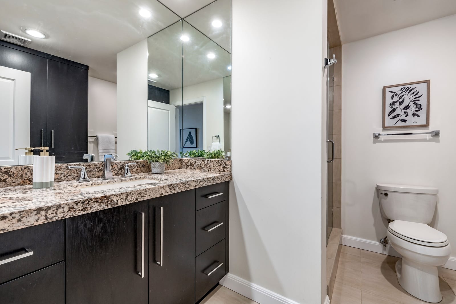 The primary suite is a serene retreat, oriented to the west to take in sunset views. A spacious walk-in closet with custom built-ins and motorized window coverings offers comfort and privacy. A well appointed secondary ensuite bedroom offers a generous walk-in closet, dual vanity and Euro glass shower and separate tub, ideal for visiting guests or family.
