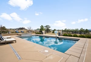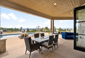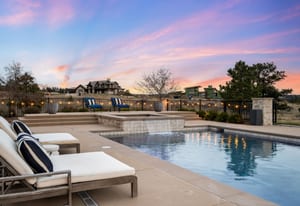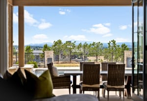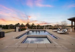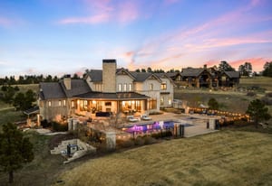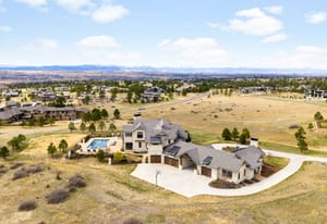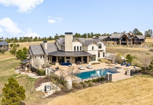 Framed by sweeping, unobstructed vistas of Pikes Peak, the rugged grandeur of the Rocky Mountains, & set w/in the prestigious Colorado Golf Club, this exceptional estate captures the very essence of Colorado living. Expansive walls of glass draw outdoors inward, filling the home w/ natural light. The great room is nothing short of breathtaking, w/ soaring 22ft ceilings, rich exposed wood beams, & a dramatic fireplace. 2 expansive folding glass walls open seamlessly to a covered terrace, creating a fluid indoor-outdoor living experience designed for both intimate moments & entertaining. At the heart of the home, the chef’s kitchen is as functional as it is beautiful, anchored by a substantial Quartzite island & equipped w/ premium Thermador® appliances. A sunlit dining nook overlooks the tranquil pool, while a spacious walk-in pantry & butler’s pantry add convenience. The main floor primary suite offers a serene retreat, complete w/ a warm stone fireplace, private access to outdoor living spaces, spa-inspired bath designed for indulgence, & a custom walk-in closet connected to the laundry room. Upstairs, 3 generously sized en-suite bedrooms provide elevated comfort & style. Function meets style in the spacious mudroom, thoughtfully designed to support the rhythm of daily life. The walk-out basement expands the home’s versatility w/ a refined recreation room, complete w/ a sophisticated wet bar, game areas, & abundant storage. Complementing the main residence is a beautifully appointed, light-filled guest house designed for main-level living. Featuring a full kitchen, bedroom, bathroom, private garage, it offers an ideal space for guests or extended family delivering privacy w/o compromising on luxury. Outdoors, a true resort-style sanctuary unfolds. The saltwater pool glistens beneath open skies, surrounded by expansive lounging terraces, a rejuvenating spa, & a welcoming fire feature all perfectly positioned to take in the breathtaking mountain scenery.