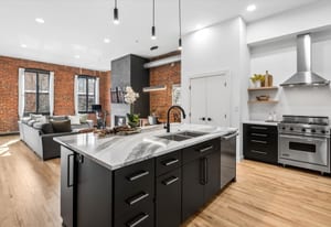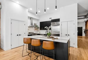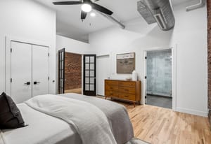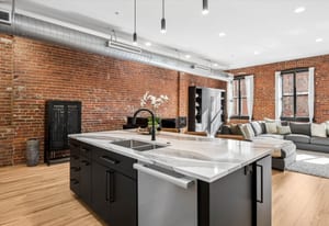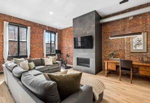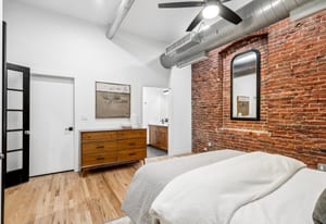 A refined loft residence in one of LoDo’s most exclusive historic buildings, thoughtfully updated for today’s urban lifestyle. Exposed brick walls, soaring ceilings, and dramatic picture windows create an airy, light-filled backdrop rich in character. The newly reimagined kitchen is a true centerpiece, featuring a full suite of professional-grade appliances from Miele, SubZero, and Viking, along with two pantry closets, an expansive quartz island, and clean, modern finishes that elevate the space without overpowering its industrial charm. A striking new fireplace façade stretches to the ceiling, adding architectural drama to the open living area.