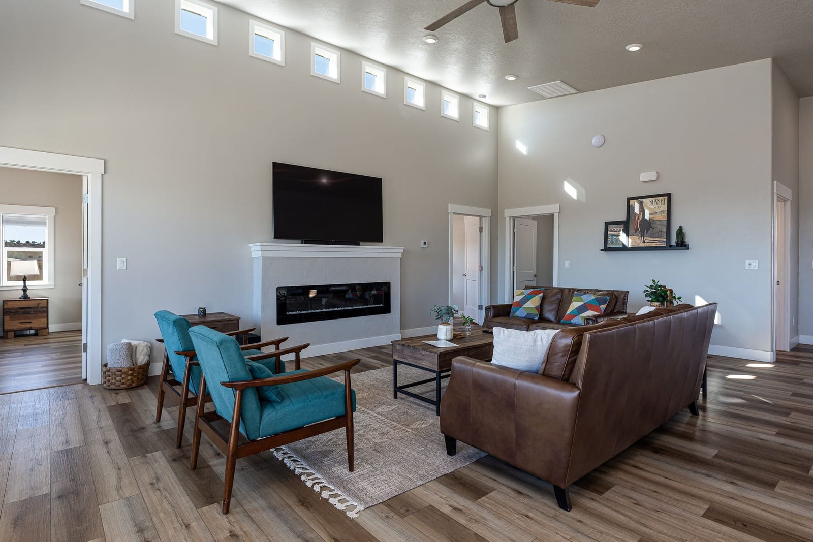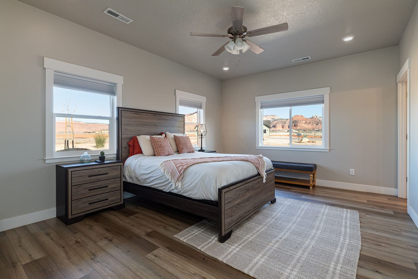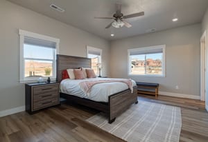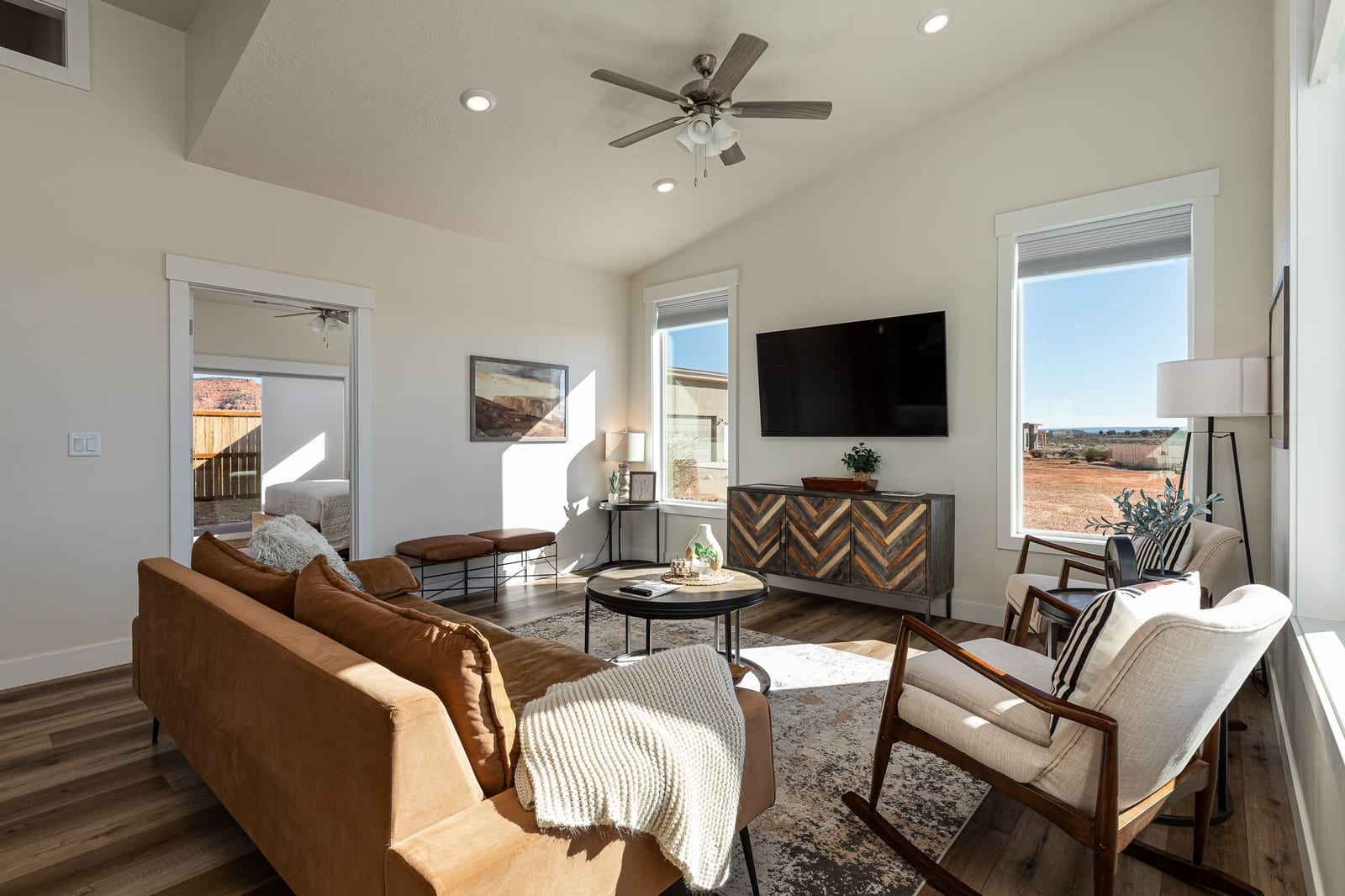 Set on 2.2 acres in scenic Kanab, this exceptional nightly-rental-approved property offers two beautifully designed homes and is being sold fully furnished with all appliances and furniture included—truly a turnkey opportunity. The main residence features 1,813 sq ft with a 2-car attached garage, vaulted ceilings, and an open-concept great room filled with natural light. Modern finishes include wide-plank flooring, sleek cabinetry, stainless appliances, and oversized windows that frame stunning red rock views.
