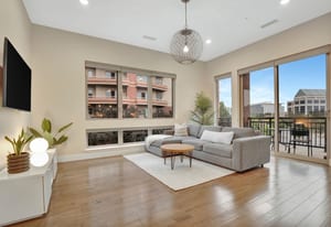Experience refined, lock-and-leave living at The Flats at VillaRosso, ideally positioned in the heart of the Denver Tech Center. This light-filled 2-bedroom, 3-bathroom residence offers 1,429 square feet of well-designed living space including a rare third bathroom, a standout feature within the building that adds flexibility for guests and everyday convenience. The open-concept layout connects the kitchen, dining, and living areas seamlessly, creating a comfortable flow for both entertaining and daily living. Expansive windows bring in natural light, enhancing the home’s warm finishes and inviting feel. The spacious primary suite includes a walk-in closet and a private bath designed for comfort, while the second bedroom features its own en-suite, offering optimal functionality and privacy.