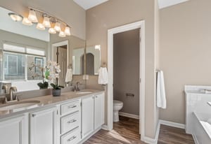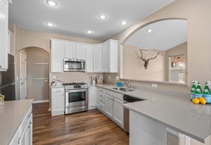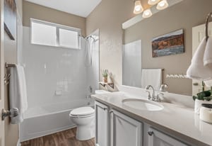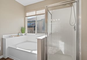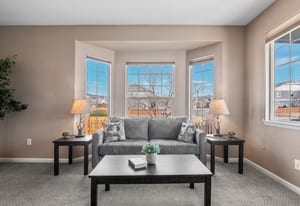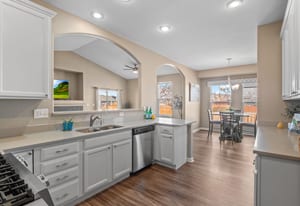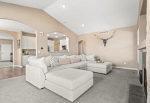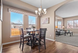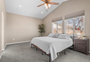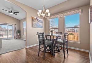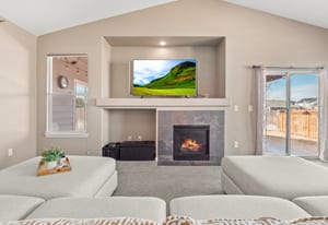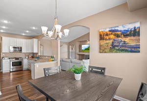 Welcome to refined comfort and effortless living in this beautifully appointed ranch-style home, ideally situated on a landscaped corner lot in desirable Potomac Farms. Designed for the ease of single-level living, it blends warmth and functionality. Step inside to an open, light-filled layout enhanced by vaulted ceilings and expansive windows that create an inviting, airy atmosphere. The spacious living and dining areas connect seamlessly, making everyday living and entertaining effortless. The thoughtfully designed kitchen features quartz countertops, stainless appliances, gas range, and abundant cabinetry with generous prep space. The adjoining family room offers a welcoming retreat, centered around a cozy gas fireplace and large windows overlooking the private backyard. Whether hosting gatherings or enjoying quiet evenings at home, this space balances comfort with elegance. The primary suite serves as a sanctuary with vaulted ceilings, walk-in closet, and five-piece bath w/ dual vanities, soaking tub, and separate shower. Two additional bedrooms on the main level provide flexibility for guests, a home office, or hobbies, with one offering a private bath. Outdoor living is equally inviting with a covered patio for relaxing or summer barbecues. The landscaped yard with irrigation offers beauty and easy maintenance, along with space for gardening or play.