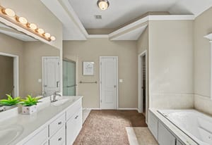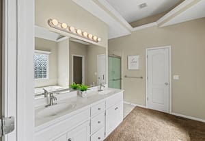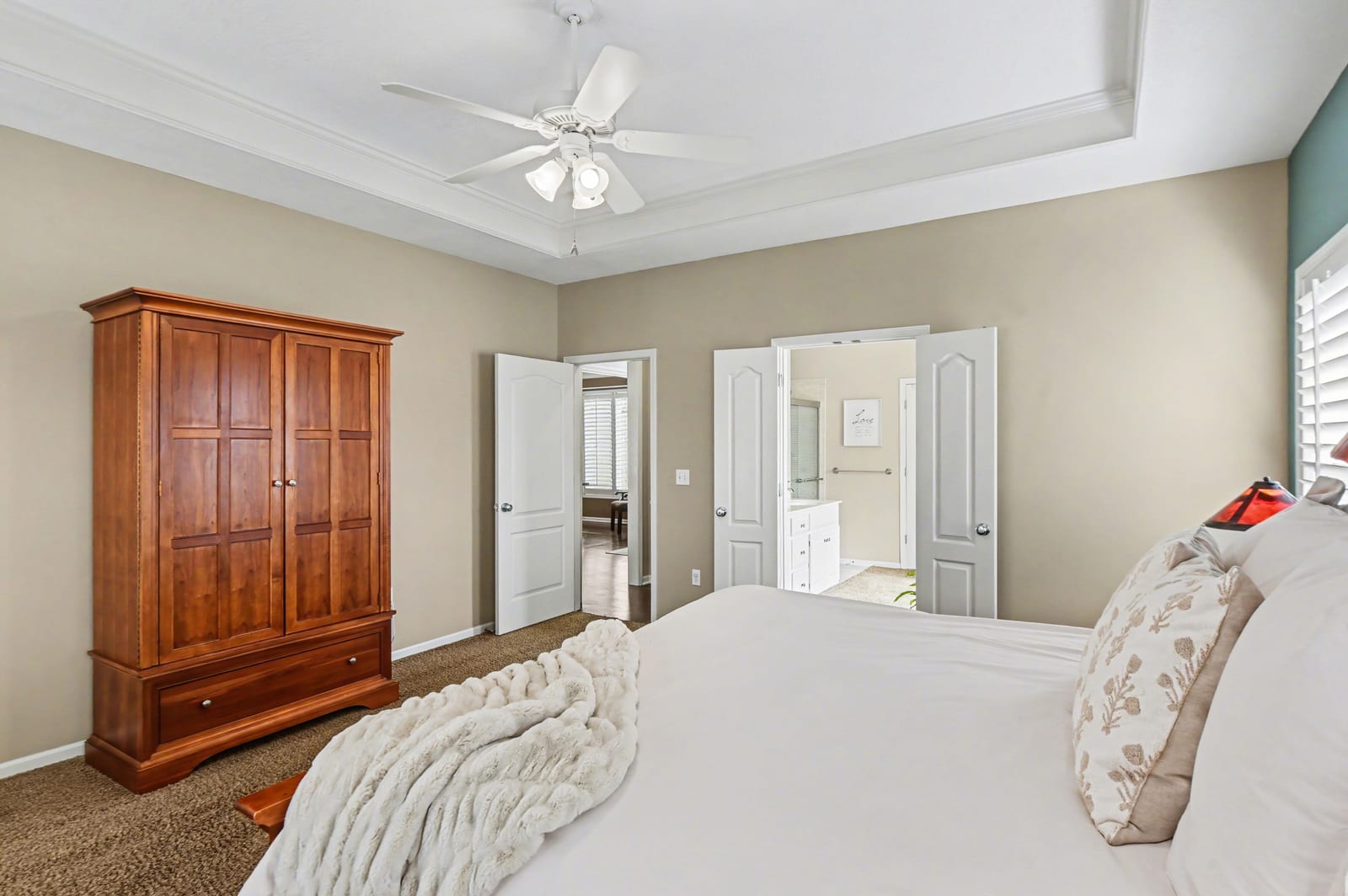 At last, the 1.5 story home you have been waiting for. You can't beat the curb appeal this home offers on a .3+ acre lot backing to trees. From the moment you walk in, you will be taken by how well cared for this home is. The soaring ceilings, large windows with plantation shutters, and finishes throughout will make you say...let's see more. The formal dining room is ready for your next holiday meal. The family room with fireplace is stunning, light and bright! The main level primary suite is welcoming and a generous size. The kitchen has light bright white cabinets and lots of counter space with a breakfast bar and windowed breakfast area which overlooks the inviting hearthroom. The second level includes a huge loft area, 3 great sized bedrooms all with new carpet and 2 full baths, a jack and jill and onsuite bath. The finished walk-out lower level was designed for entertaining for a full "cheers" bar, media area, fireplace, 4th full bath and lots of extra storage. Newly epoxied garage floor, 5 year old roof, 4 yr old A/C & 1 yr old water heater will give you a great start! All of this in a prime location—just a short walk to the elementary school and minutes from shopping, dining, and easy highway access. This is a rare opportunity to own a truly special home in one of the area’s most desirable neighborhoods.