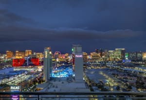 Experience elevated high-rise living at Palms Place in this beautifully appointed studio residence showcasing breathtaking views of the iconic Las Vegas Strip. This thoughtfully designed studio offers an open-concept layout that maximizes space and natural light, with floor-to-ceiling windows framing the dazzling city skyline. The full kitchen is equipped with modern cabinetry, sleek countertops, and built-in appliances. The spacious living and sleeping area flows seamlessly, creating a comfortable retreat high above the city. The well-appointed bathroom features contemporary finishes and a spa-inspired feel, ideal for relaxing after a vibrant day or evening out. An extra feature is the private owner’s closet—providing secure storage and flexibility for personal use or rental opportunities. Located just a minutes from Las Vegas Strip, Palms Place offers luxury amenities including a resort-style pool, fitness center, valet, and concierge services.