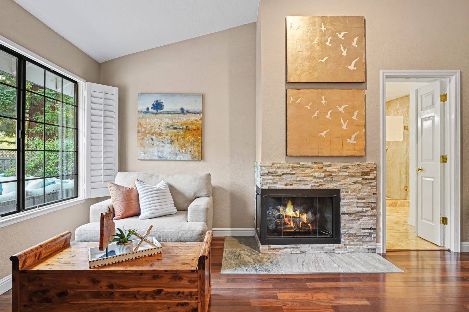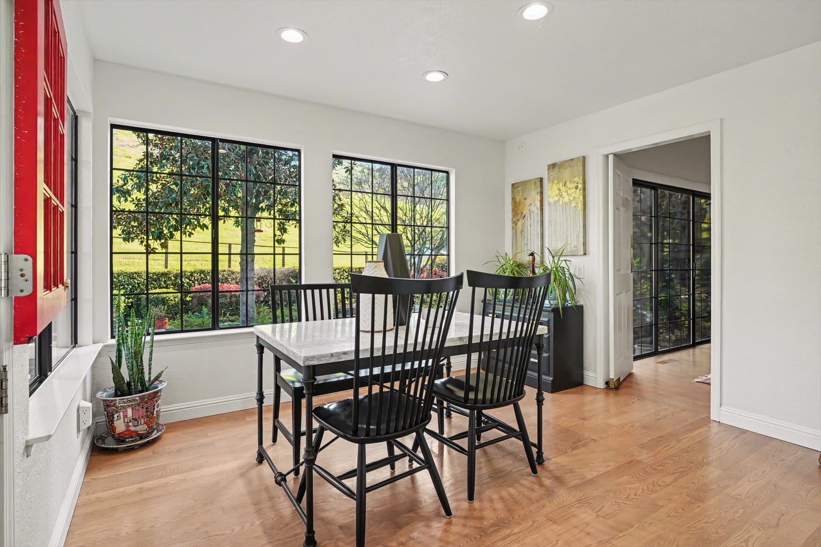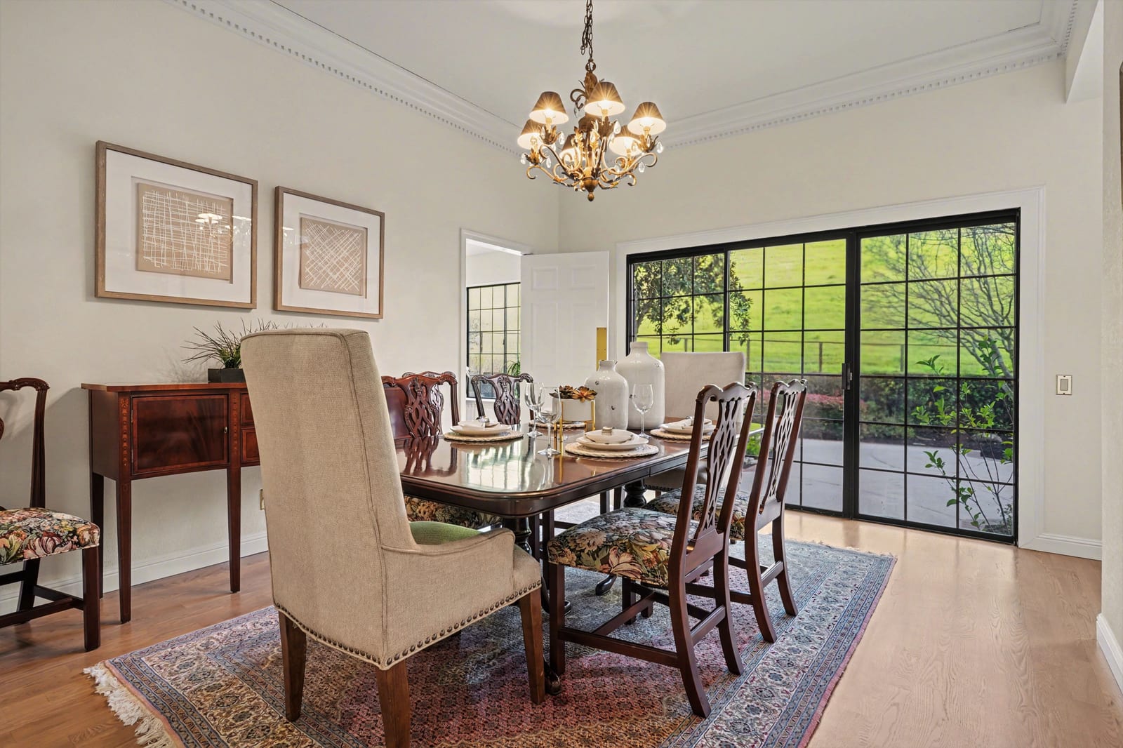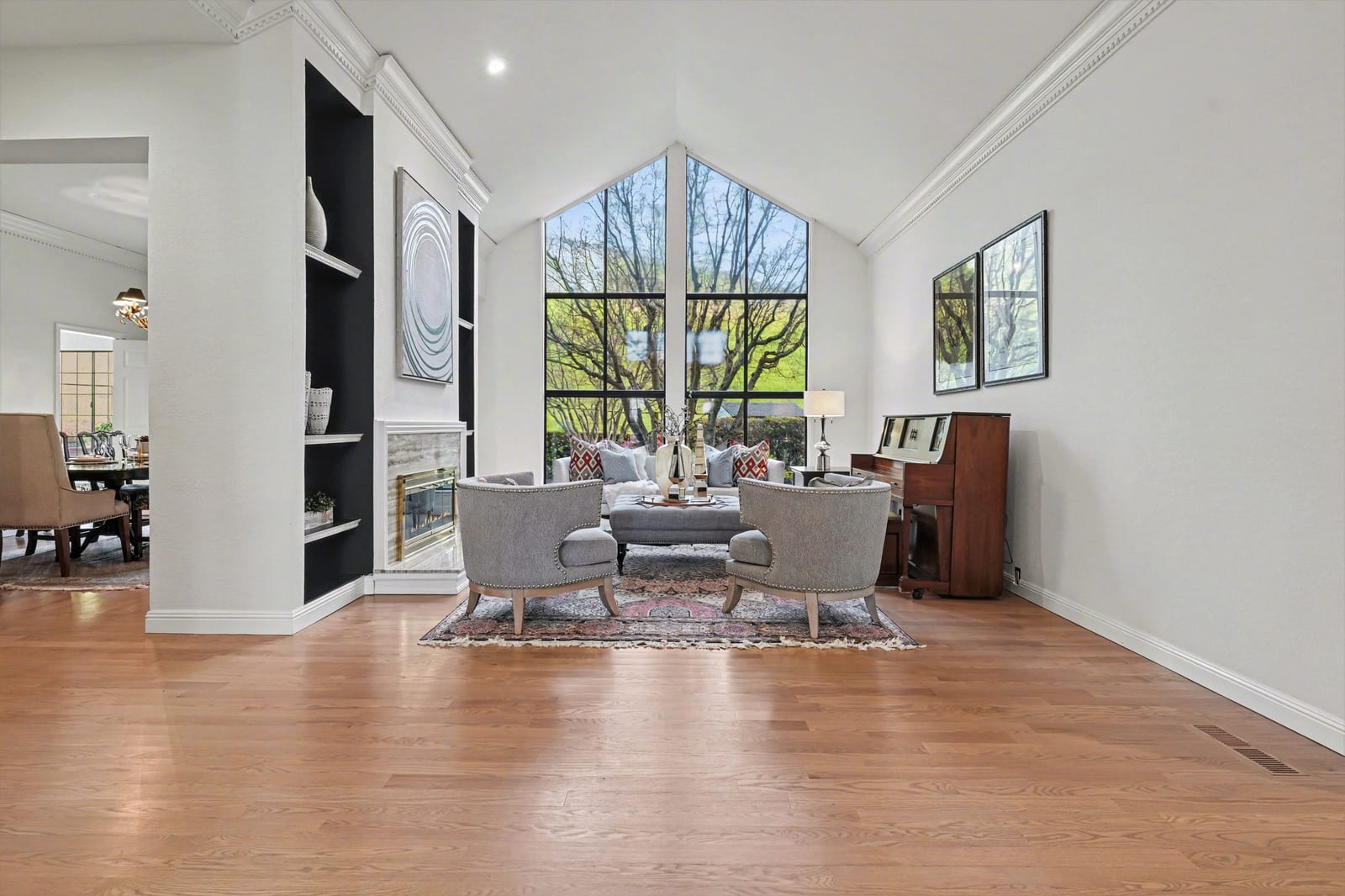 Stunning Blackhawk Country Club single-level jewel, in one of the East Bay's premier neighborhoods. This seamless blend of classic architecture w/ updates throughout promises to exceed every expectation. This well-cared-for estate offers a light-filled living room with gable ceilings, built-in floor-to-ceiling custom display shelves, a handsome fireplace feature, walls of glass, and hardwood floors throughout. The spacious formal dining room is ideal for celebrating life's special moments. There's a butler pantry door from the kitchen eat-in area to the formal dining room, adding a privacy feature and ease for entertaining. The updated Chef's kitchen offers a crisp feel with ample stone counter space & storage. The generous family room has a full-service refreshment area and room to spread out and relax. The main living areas overlook a level.45 acre with pastoral views and local wildlife roaming by, adding to the charm & enjoyment of daily activities in this wonderful estate. Single-level living! This one checks all the right boxes! Price to allow room for cosmetic updates. Solid structure and friendly floor plan. Hurry!!
