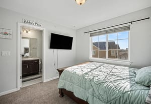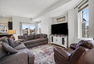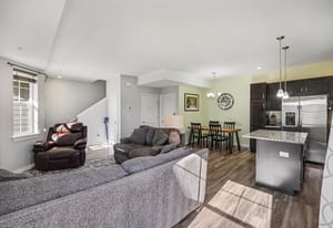Corner Unit close to parking, open floor plan, eat in kitchen, granite counters, main floor half bath, large unfinished basement, upstairs 2nd bedroom has attached bathroom, office, plus primary with double vanity bathroom suit