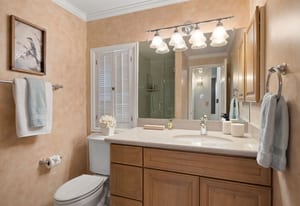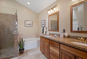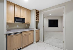 The main-floor primary suite enjoys tranquil views, offering a peaceful retreat at the end of the day. Downstairs, the walkout basement expands the home’s versatility with a generous living area, theater room, wet bar, guest bedroom, and a flexible fourth bedroom or game room, office, or den. A lower covered patio and extended flagstone terrace continue the indoor-outdoor connection.