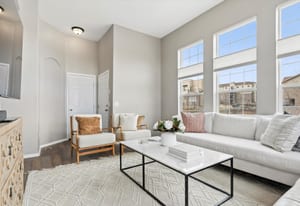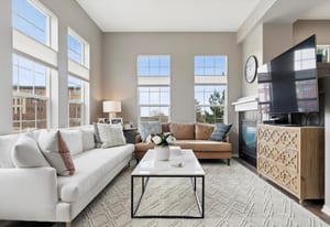 Welcome to the best end unit in Highlands Ranch Town Center — a stunning 2-story Brownstone with 3 bedrooms and 3 bathrooms, that combines modern updates with unbeatable natural light and location. Perfectly positioned on a prime corner lot across from Civic Green Park, this home is flooded with sunshine through its extra-large windows, offering an open, airy feel throughout.
