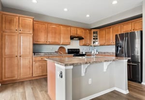 Step inside to find brand-new carpet, luxury vinyl plank flooring, and fresh professional paint. The bright, open kitchen features a large island, modern finishes, and all appliances included. Vaulted ceilings and walls of windows create a sense of space and style, while thoughtful upgrades like custom blinds and contemporary light fixtures complete the look.