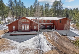 Welcome to your Rocky Mountain sanctuary—where breathtaking views, peaceful surroundings, & refined mountain living come together in perfect harmony. Set on 10 pristine acres in Spring Creek Ranch, this exceptional 5-bed, 3-bath mountain contemporary home offers 2,780 sq ft of thoughtfully designed living space. Step inside to a dramatic 2-story living room featuring soaring cathedral windows, exposed wood beams, & a striking wall of wood shelving. The inviting dining area is perfect for entertaining, while the cozy eat-in kitchen provides ample counter space & storage for everyday living. The main-floor primary suite is a true retreat, complete with a nice 4-piece bath. Two additional bedrooms, a full bath, & a convenient laundry space complete the main level. Upstairs, a versatile loft offers the ideal space for a home office, study, or media area, enhanced by custom built-ins. Two additional bedrooms & a third bath are situated above the oversized attached garage, offering privacy & flexibility for guests or family. Designed with both comfort & functionality in mind, the home features a direct connection to the barn—allowing easy access without exposure to the elements. The impressive 24’ x 48’ two-story barn includes 3 stalls, a tack room, a 1,200 sq ft loft, & opens to a corral and level pasture—perfect for horses, equipment storage, or creative pursuits. A 12-foot-wide drive-through lane accommodates tractors, trailers, or RVs with ease. Residents of Spring Creek Ranch enjoy exclusive access to a stocked community pond for fishing, canoeing, & paddleboarding, as well as a charming outdoor pavilion for picnics. Ideally located near Buffalo Creek & adjoining Pike-San Isabel National Forest, with direct access to the Colorado Trail, this property also sits just minutes from the North Fork of the South Platte River—renowned for its gold medal trout fishing.This is Colorado mountain living at its finest—private, picturesque, and full of possibility.