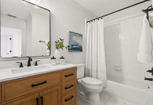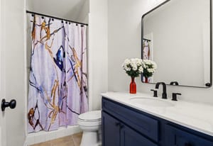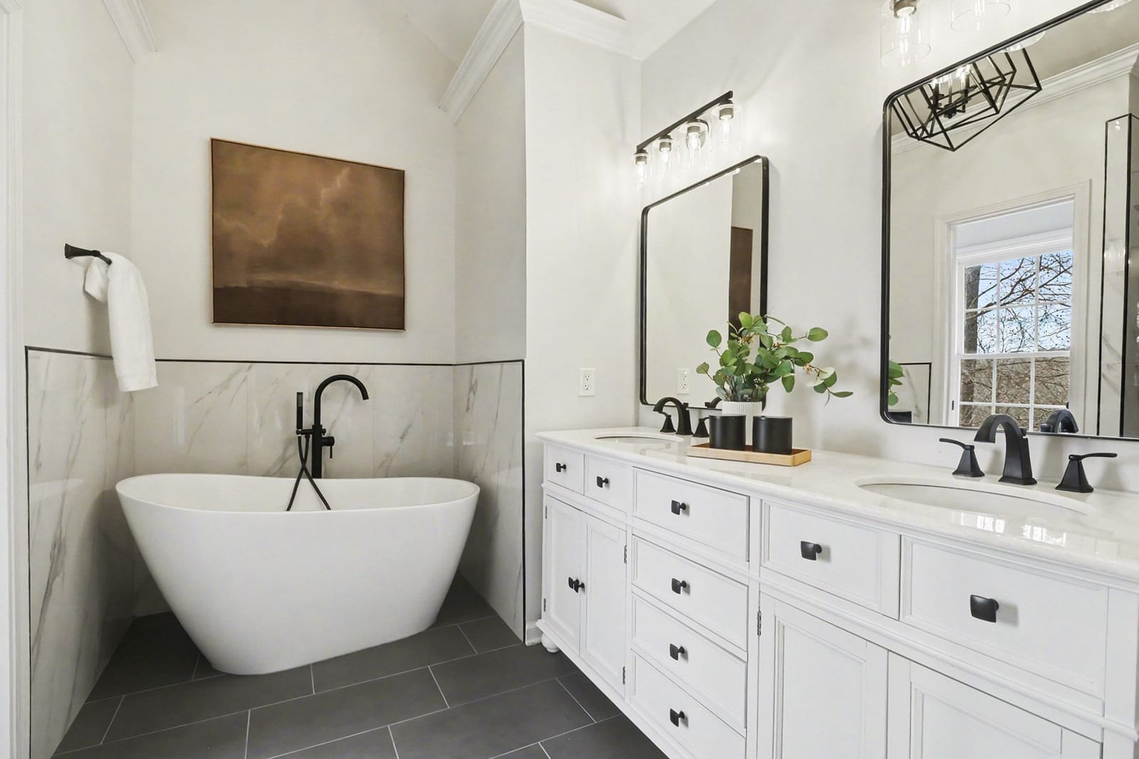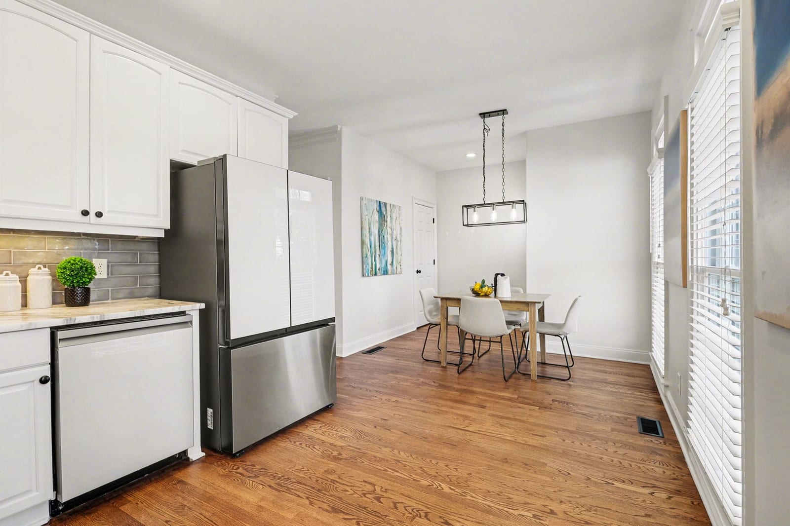 Completely reimagined from top to bottom, the residence feels remarkably fresh and move-in ready. Recent updates include newly refinished hardwood floors, designer lighting, and updated fixtures and hardware throughout. The kitchen has been thoughtfully refreshed with freshly painted cabinetry, stunning new marble quartzite countertops, a beautifully tiled backsplash, and matching Samsung appliances. The primary bath has been fully transformed, featuring new tile flooring, a frameless glass shower with designer tile, a soaking tub with pedestal faucet, a new double vanity, and a statement chandelier. Secondary baths have also been stylishly updated with new vanities, lighting, mirrors, faucets, and hardware. The home is completed by fresh interior and exterior paint, enhancing its crisp, modern appeal.