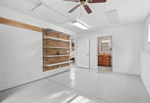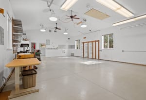 The crown jewel is the 1,275 sq. ft. climate-controlled workshop. Whether you are a master woodworker or a car enthusiast, this space is unparalleled—flooded with natural light, this space is equipped with specialty lighting for auto work, gas line for welding, a flex room, bathroom and high end modifiable shelving. Did we mention the additional attached 3 car garage?
