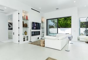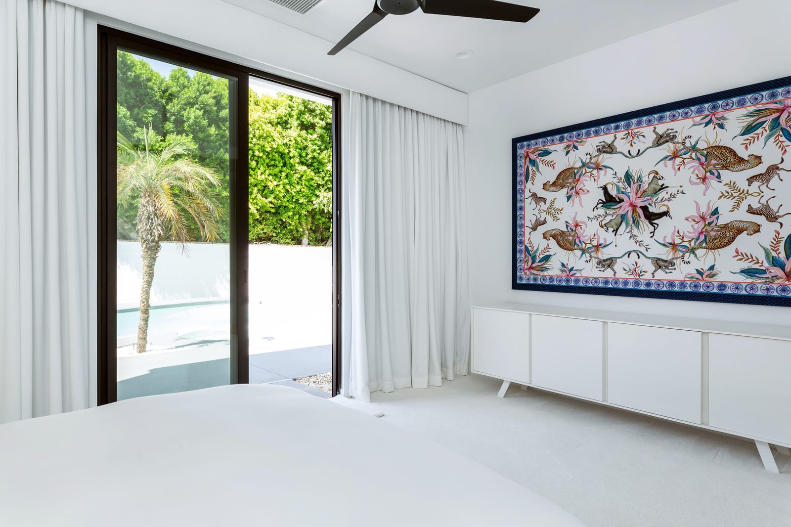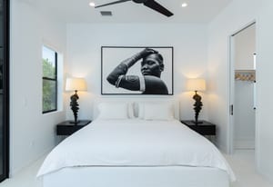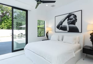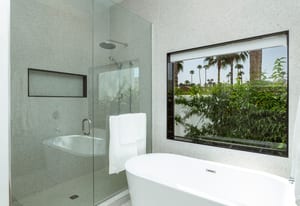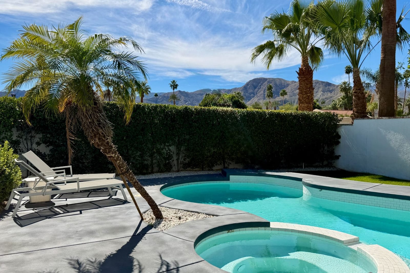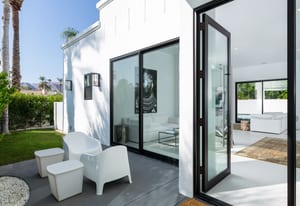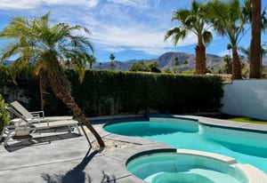 Completely taken down to the studs and rebuilt in 2020, the home reflects a thoughtful commitment to modern desert living. Clean lines, refined finishes, and walls of glass dissolve the boundary between indoors and out, while soaring ceilings create an airy sense of volume throughout. With buried power lines preserving uninterrupted southern mountain views, the surrounding landscape becomes an ever-present part of the home’s design.