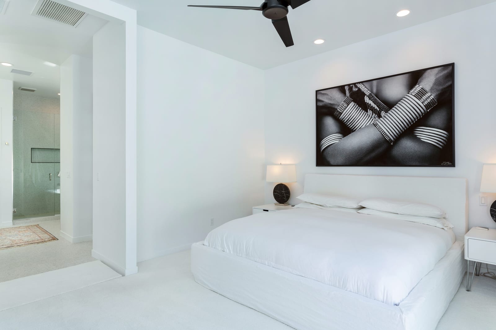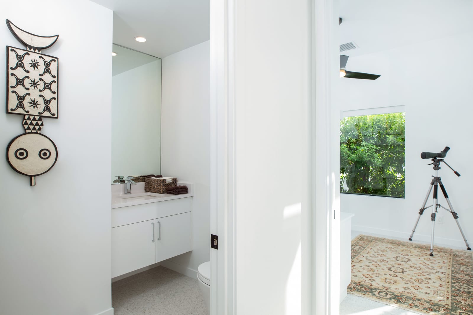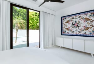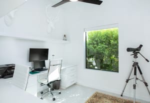 The primary suite offers a peaceful retreat, while two additional en-suite bedrooms and a dedicated office provide flexibility for guests, work, or creative pursuits. Automated blinds allow light and privacy to be tailored to the moment.