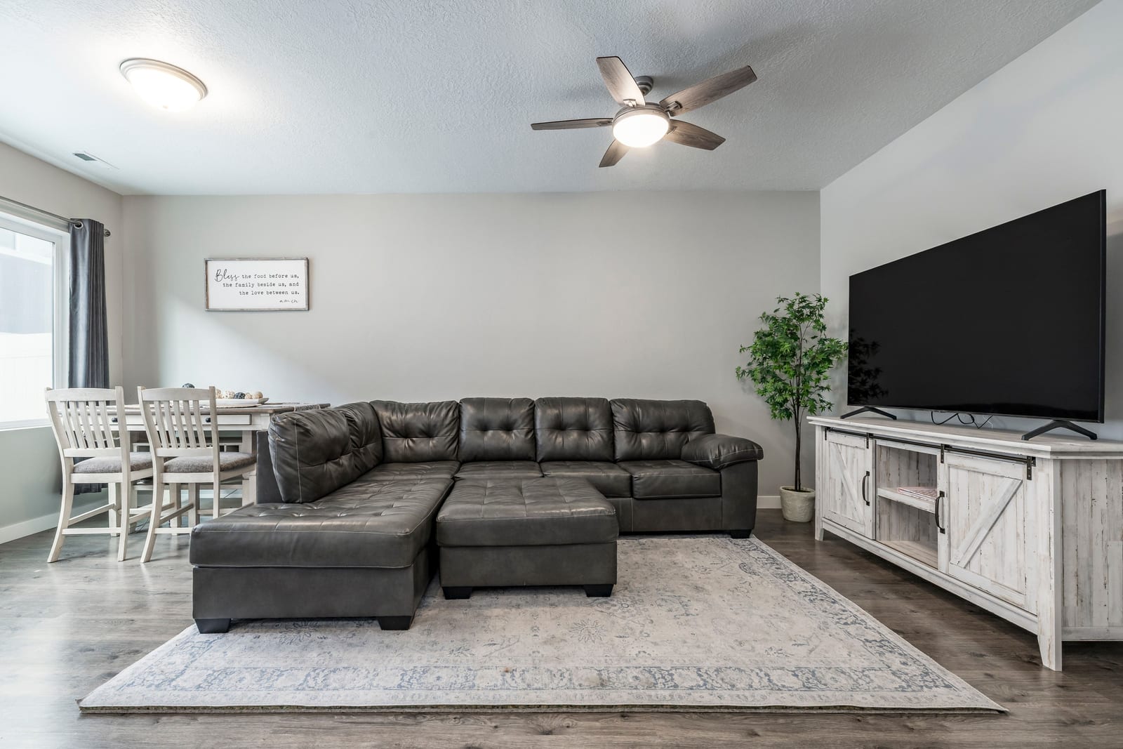 Welcome home to 3763 S 3175 W in West Haven! This move-in-ready 1,852 sq ft home features 3 spacious bedrooms and 2.5 bathrooms. The kitchen offers granite countertops and opens to comfortable living and dining spaces. Fresh interior paint and newly installed ceiling fans/lights in every room. Step outside to a fully fenced back patio--ideal for relaxing or entertaining. Additional highlights include a 2-car garage and a prime location close to shopping, schools, and easy freeway access. A must-see opportunity you won't want to miss!